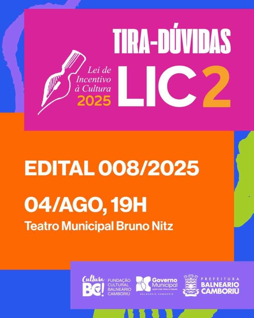 Evento sobre a LIC II será no Teatro Municipal Bruno Nitz A Fundação Cultural de Balneário Camboriú promoverá, na segunda-feira (4), um encontro para tirar dúvidas sobre a edição especial da Lei de Incentivo à Cultura (LIC II). Direcionado a artistas e produtores culturais, o encontro será às 19h, no Teatro Municipal Bruno Nitz. Lançado […]