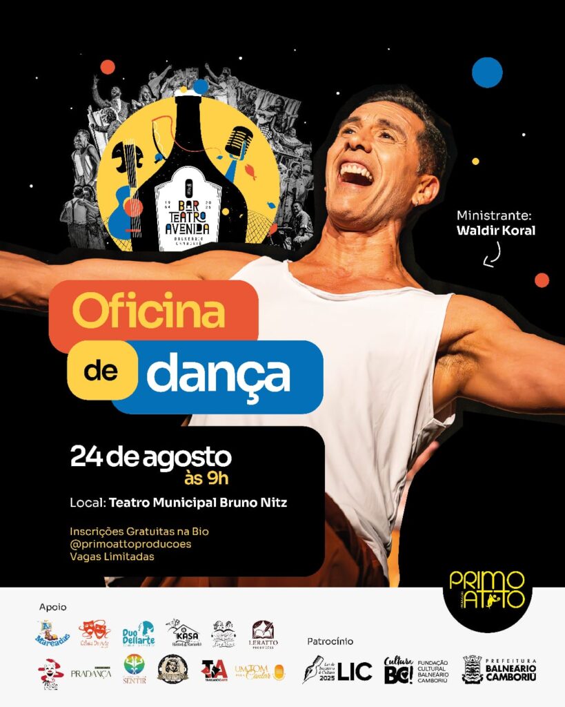 Patrocinado pela Lei de Incentivo à Cultura de Balneário Camboriú (LIC), o projeto “Bar Teatro Avenida – Temporada Teatral” está com inscrições abertas para oficinas gratuitas de Atuação, Música Cênica e Dança.