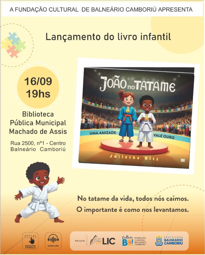Com uma abordagem sobre o poder inclusivo do esporte e o valor da amizade, o livro ilustrado “João no Tatame” será lançado terça-feira (16), às 19h, na Biblioteca Pública Municipal Machado de Assis. A obra, da escritora Juliethe Nitz, é patrocinada pela Lei de Incentivo à Cultura de Balneário Camboriú (LIC) e estará disponível gratuitamente […]