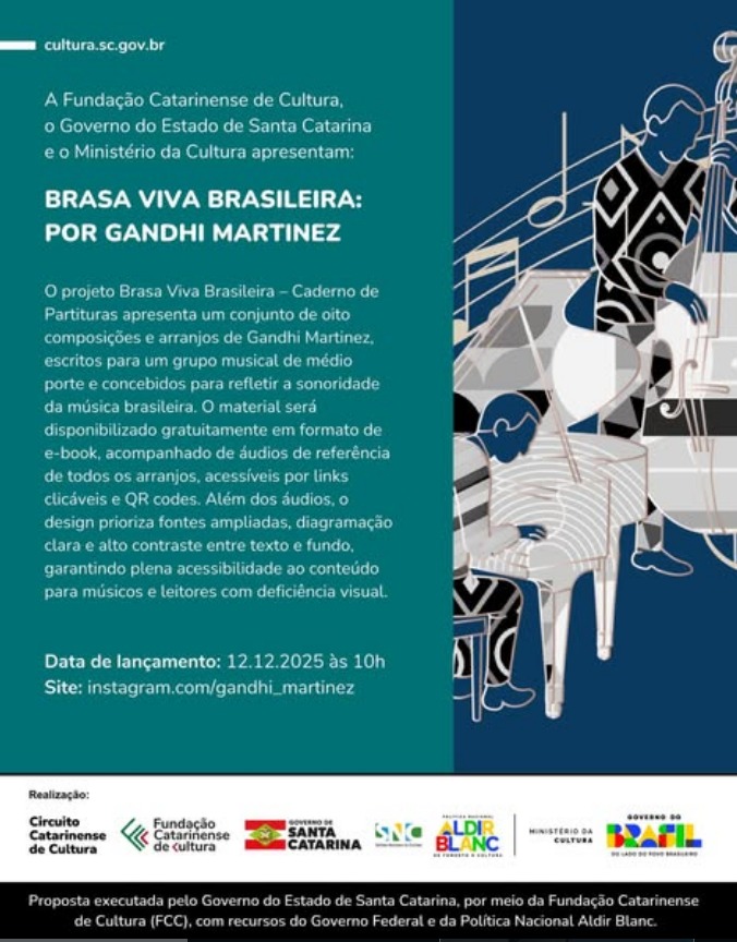 Caderno de Partituras será lançado gratuitamente no dia 12 de dezembro de 2025, às 10h, com disponibilização pelo perfil no Instagram do artista: https://www.instagram.com/gandhi_martinez/ A publicação reúne quase 500 páginas contendo oito composições e arranjos originais, escritos para um grupo musical de médio porte e inspirados na diversidade estética da música brasileira. O material possui […]
