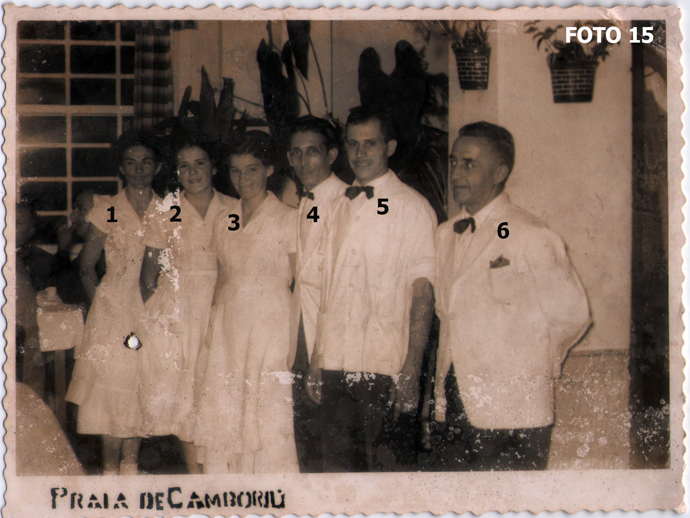 Foto 3995 – Hotel Balneário, final da década de 1950. Identificados: 1 – Maria Roziene Linhares; 3 – João Faraco; 4 – Carlos Rosa (conhecido como Calinho Rosa, faleceu no dia 7 setembro de 2017).