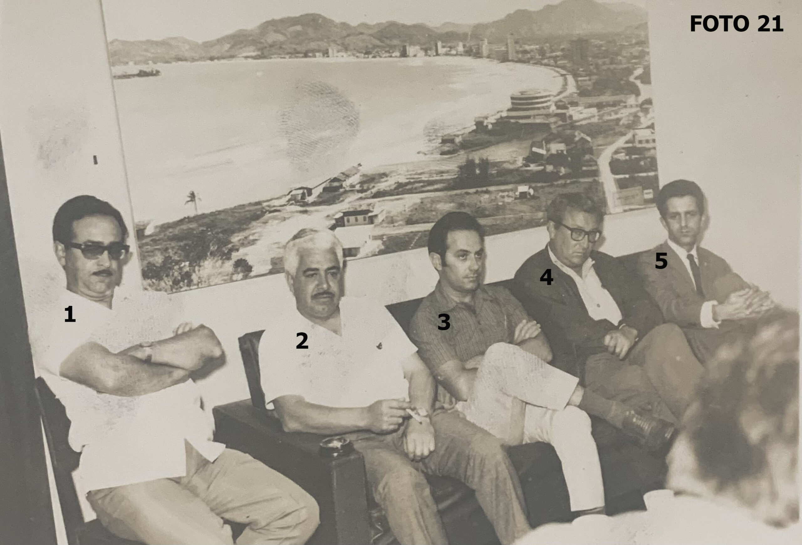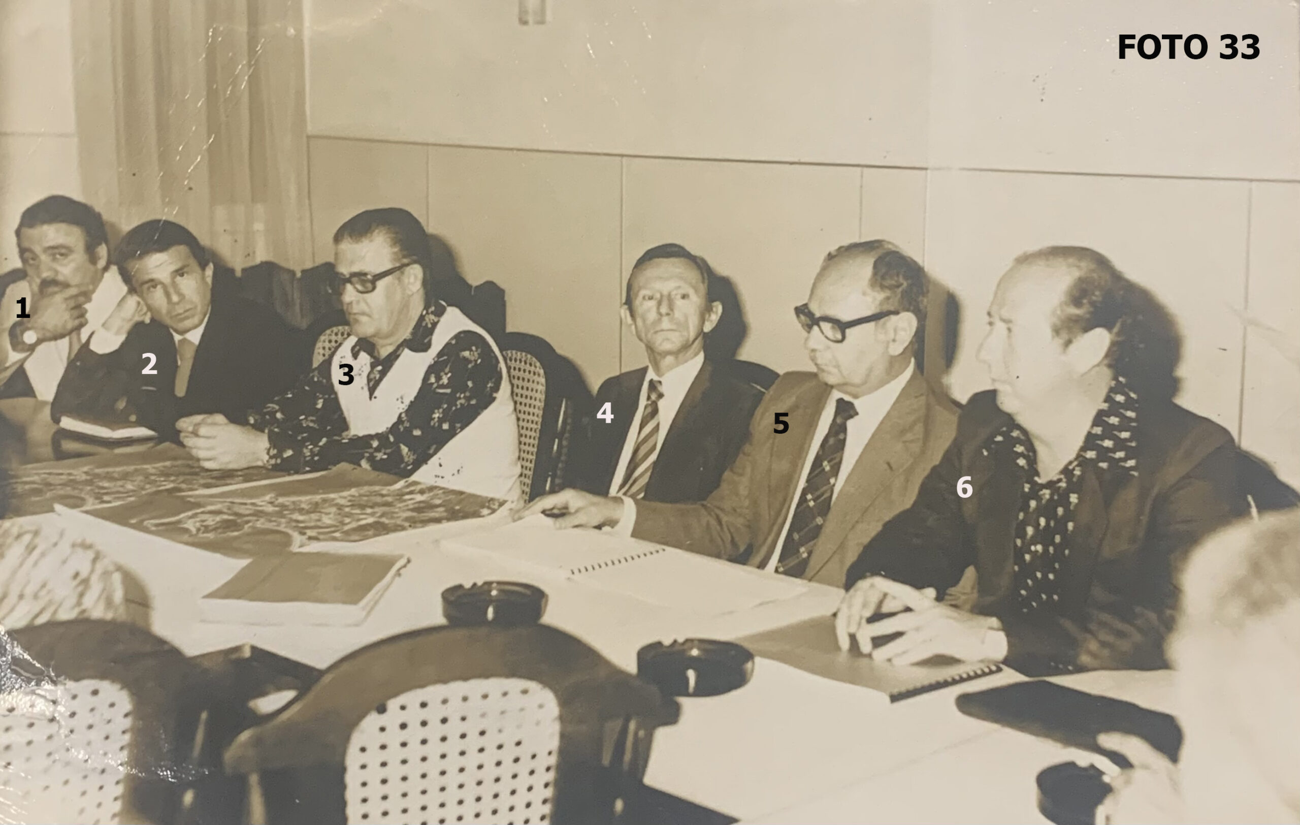 Foto 3991 (GAB-ACS 2364) – Prefeitura, década de 1970. Identificados: 1 – Antonio João Braga (advogado, conhecido como Braguinha); 3 – Moacir Novelletto (arquiteto); 5 – João José Maurício D’Avila (juiz).