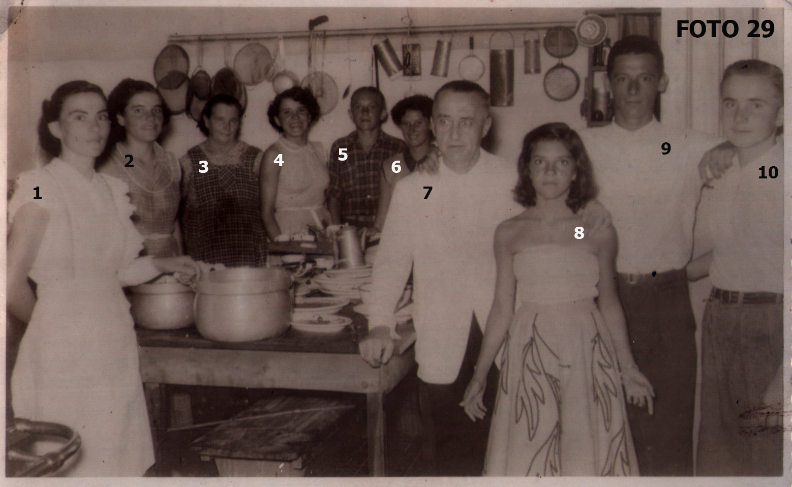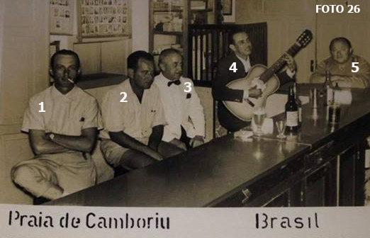 Foto 3996 – Hotel Balneário, final da década de 1950. Identificados: 2 – Carlos Rosa; 3 – Augusto Humberto Krevinkel (maitre e pianista do hotel); 4 – João Faraco; 5 – Victor Passold (proprietário do hotel).