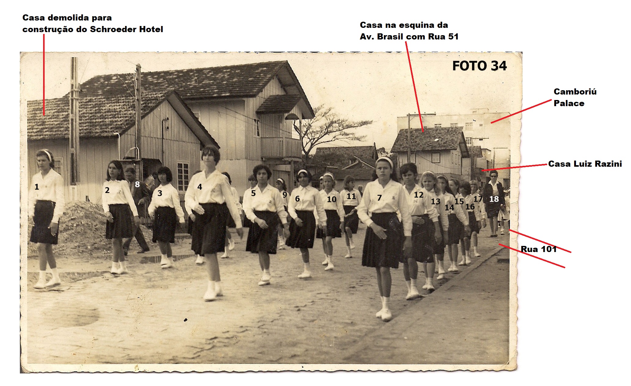 Foto 4002 – Desfile de 7 de Setembro, Avenida Brasil, década de 1960. O grupo da foto está nas proximidades da Rua 51 e Rua 101, caminhando para o sentido norte. Identificados: 4 – Maristela Sens.