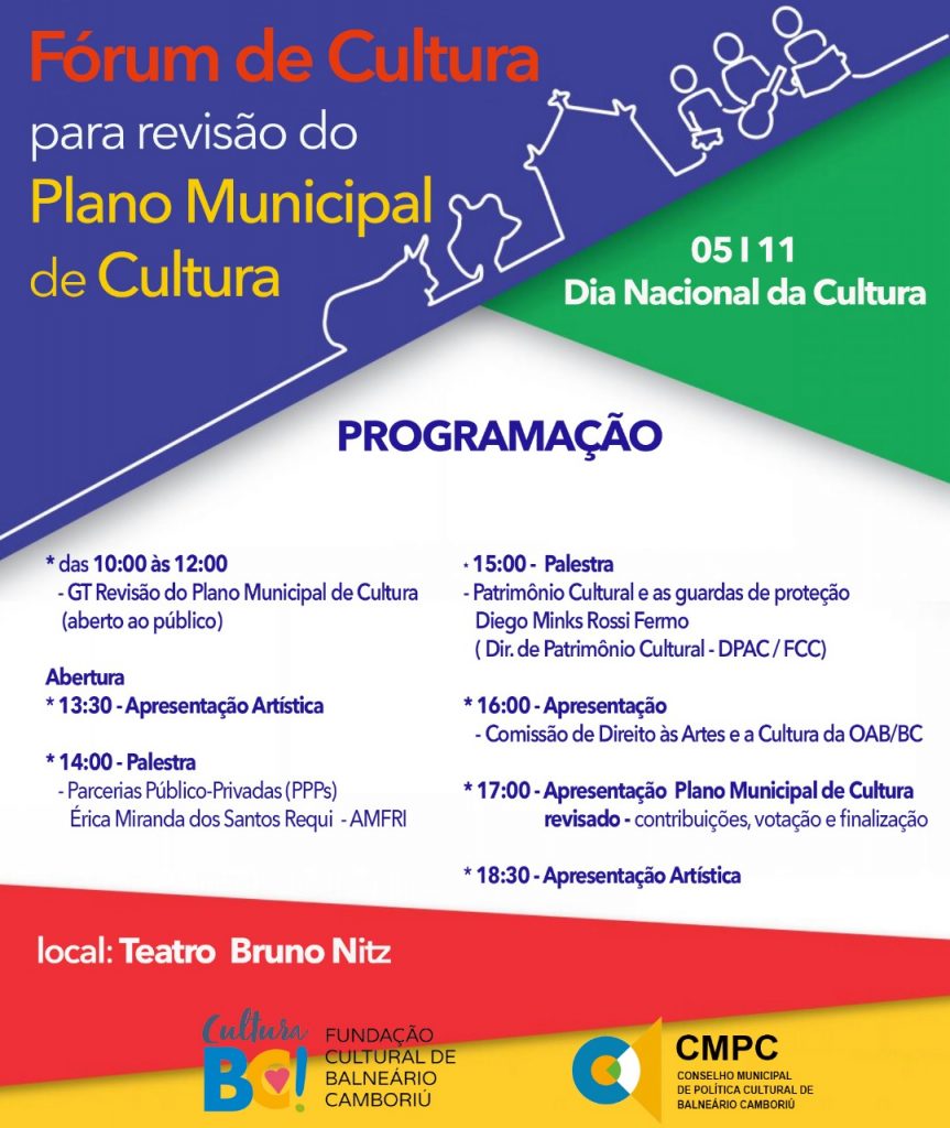 O Fórum Municipal de Cultura será nesta terça-feira (5), Dia Nacional da Cultura. O evento terá abertura oficial às 13h30, com apresentações artísticas, e vai até as 19h30, no Teatro Municipal Bruno Nitz Promovido pela Fundação Cultural de Balneário Camboriú e Conselho Municipal de Política Cultural, o Fórum é destinado a agentes e produtores culturais, […]