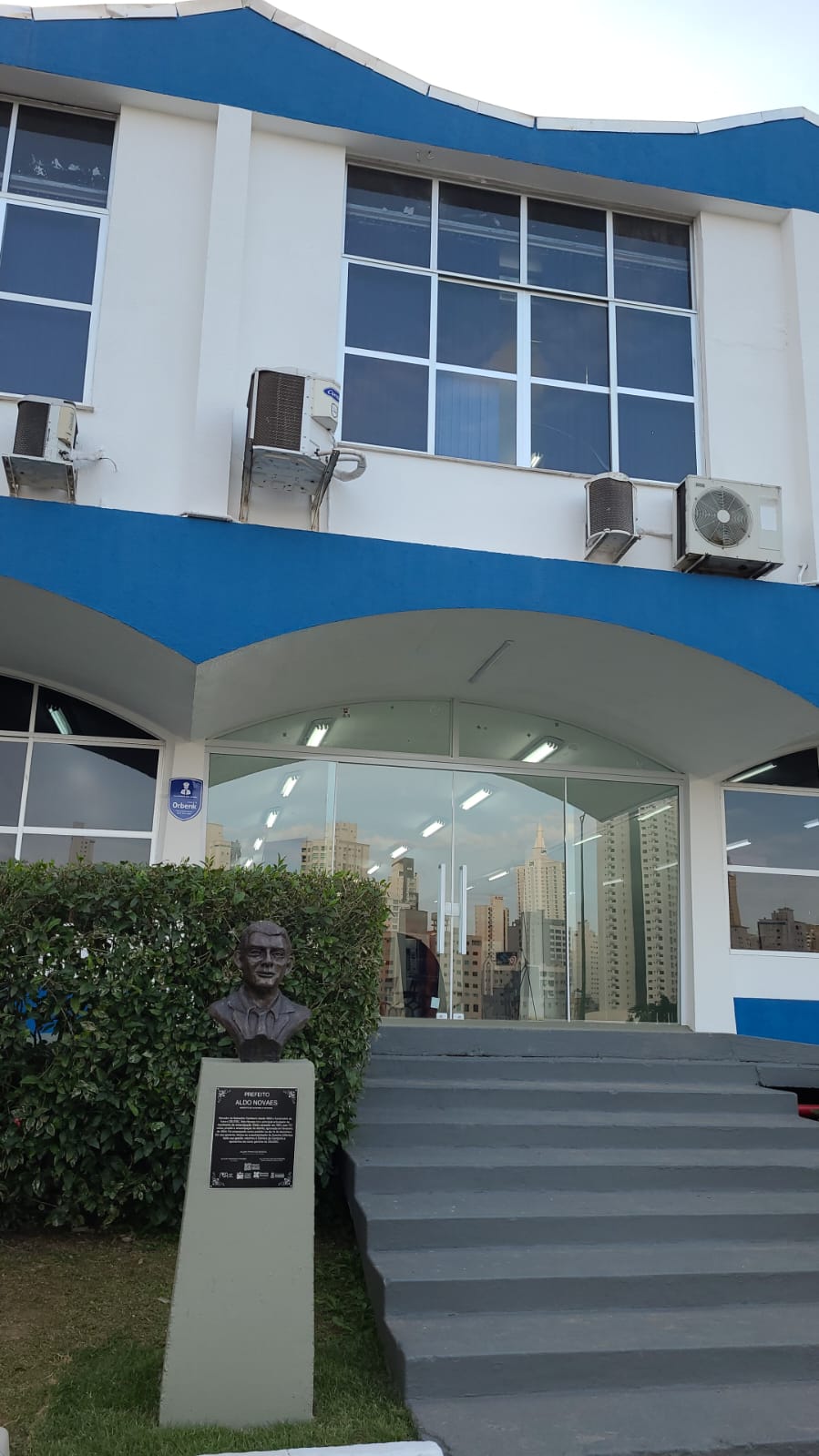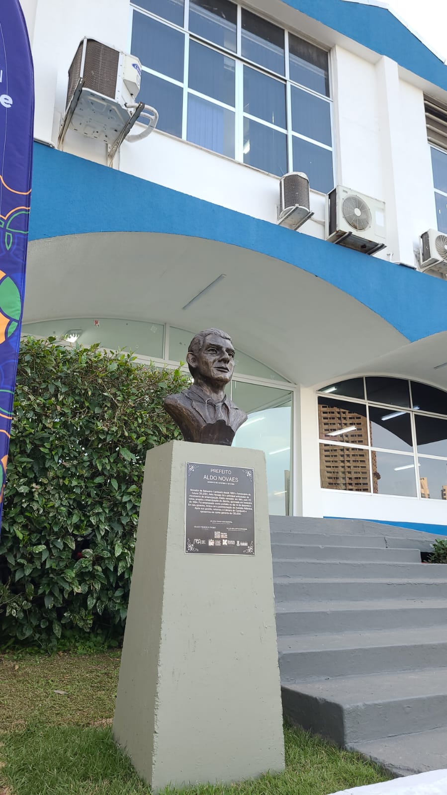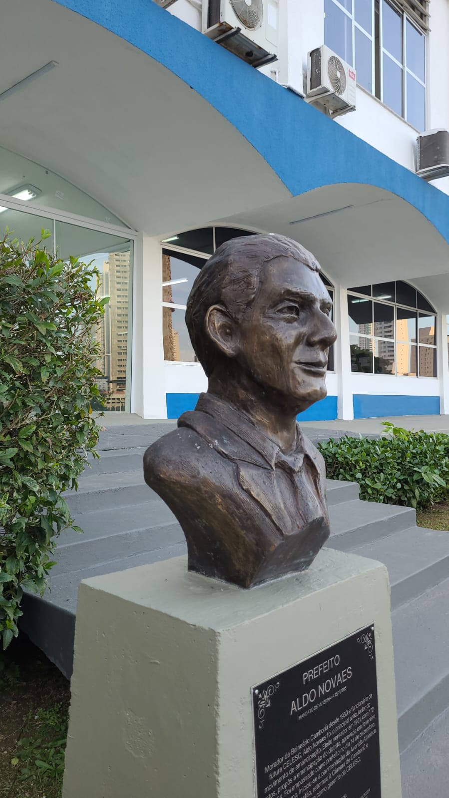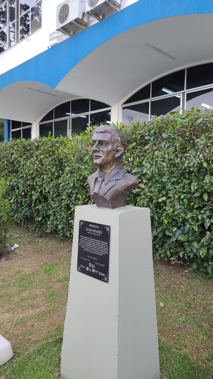 Escultura em formato de Busto, baseado em registros de fotografias do homenageado, representando a figura histórica de Aldo Novais.