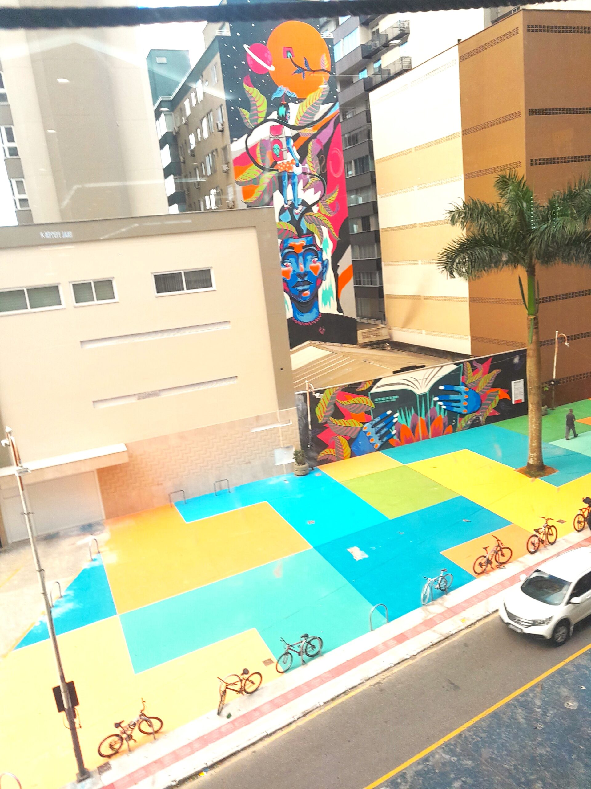 A obra representa quadros coloridos criando uma sensação de movimento dependendo do ângulo que se vê. Ela foi realizada na calçada da Praça da Cultura, compondo um ambiente mais moderno junto às demais obras contidas na Praça, onde ocorrem feiras e eventos.