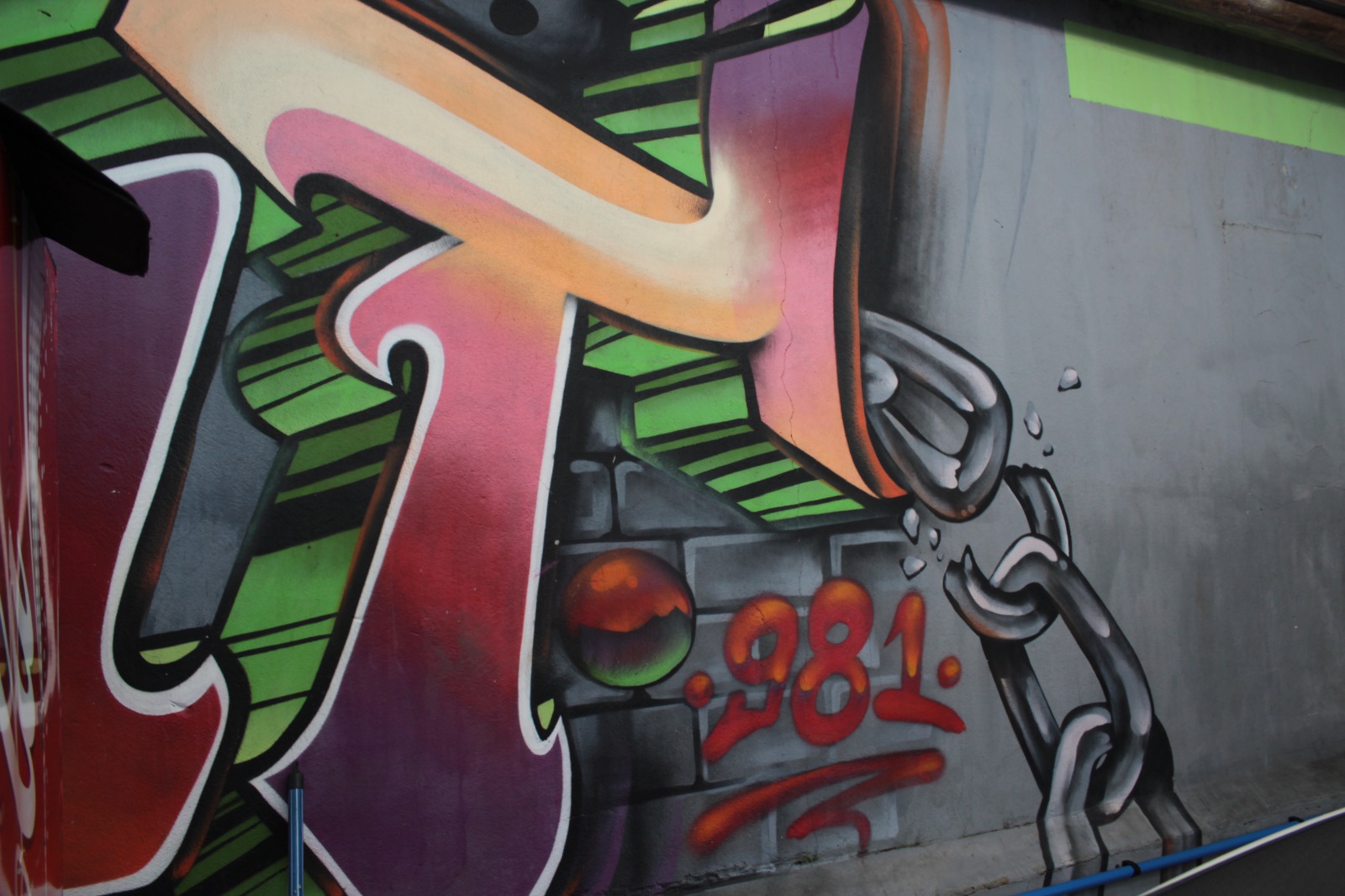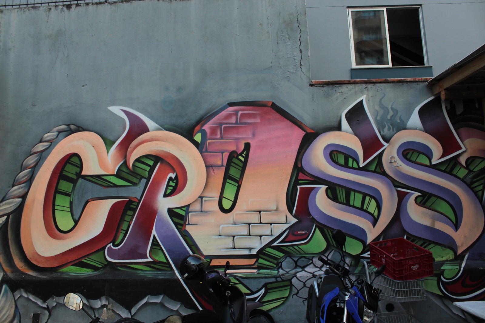 A obra representa letra coloridas com a escrita “Cross”, com o fundo cinza.