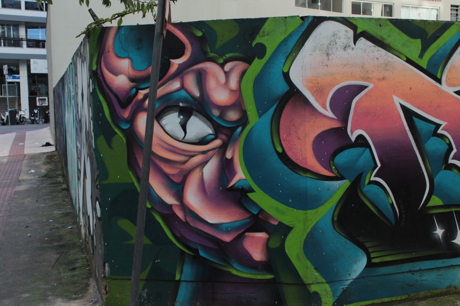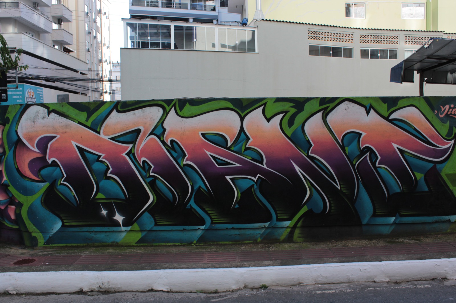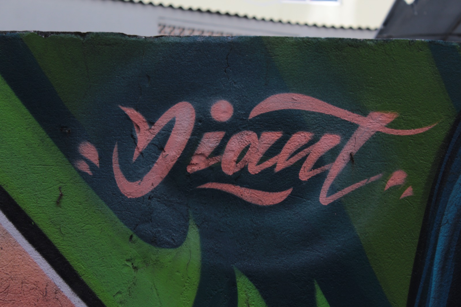 A obra representa letras coloridas com a escrita “Diant”