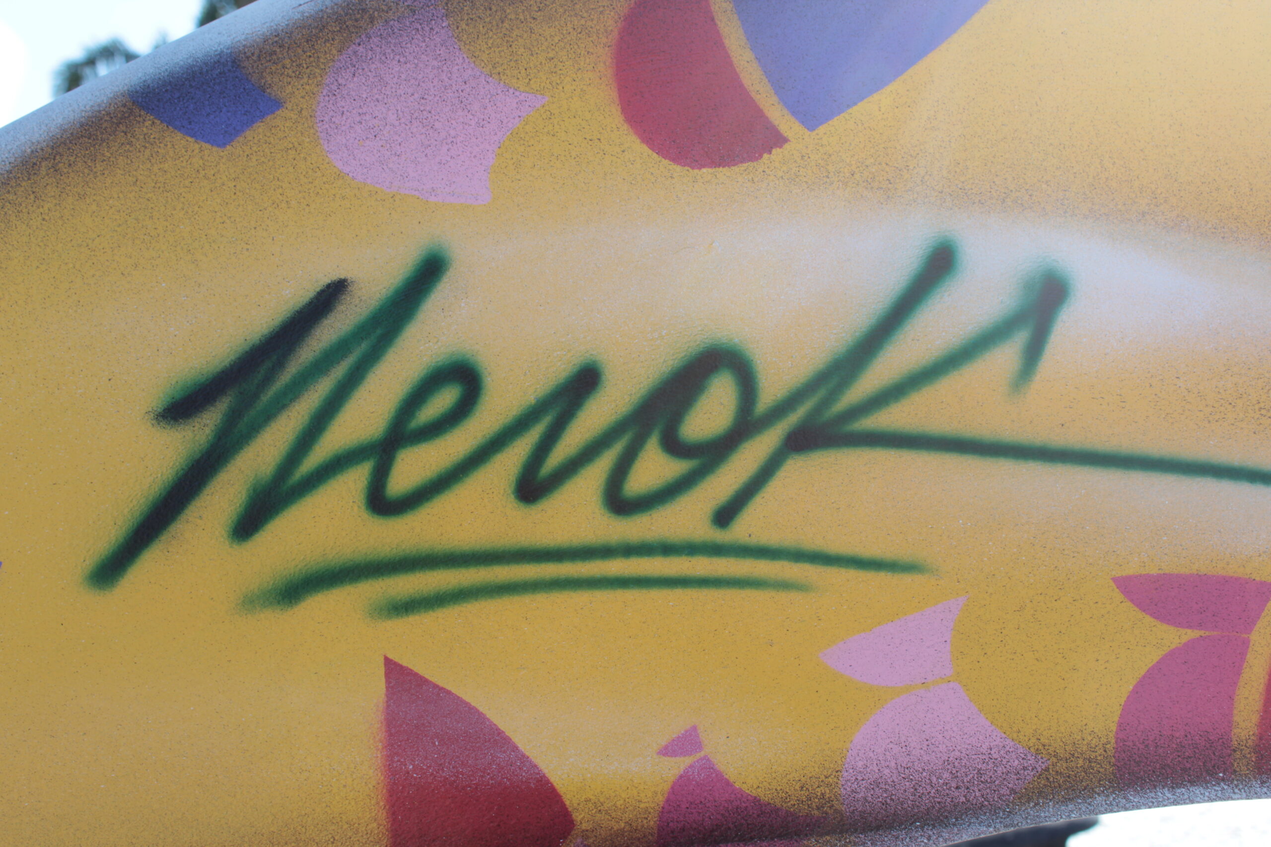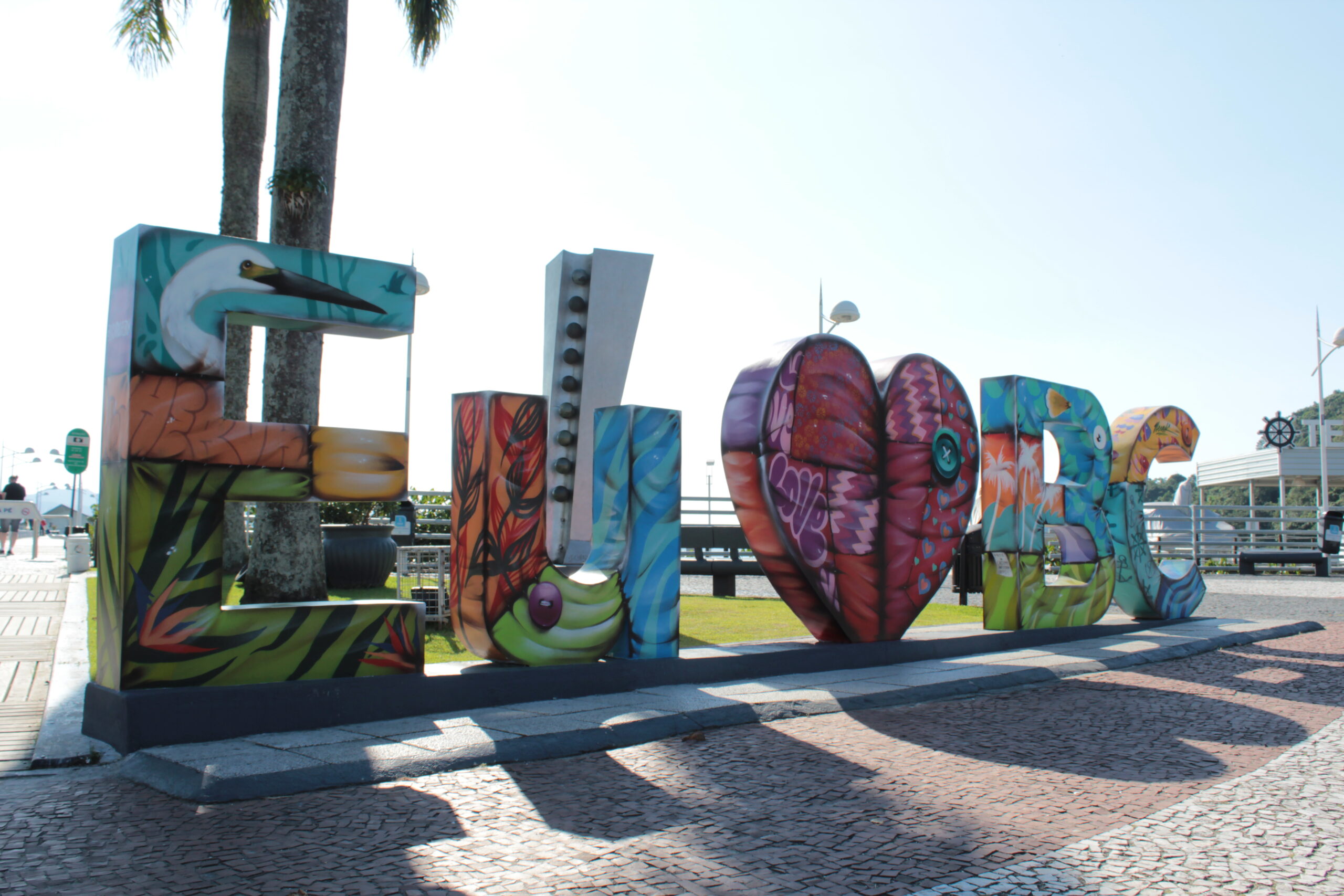Grafite com alusão a retalhos abordando temas regionais como pesca artesanal, boi de mamão, cultura, fauna e flora.