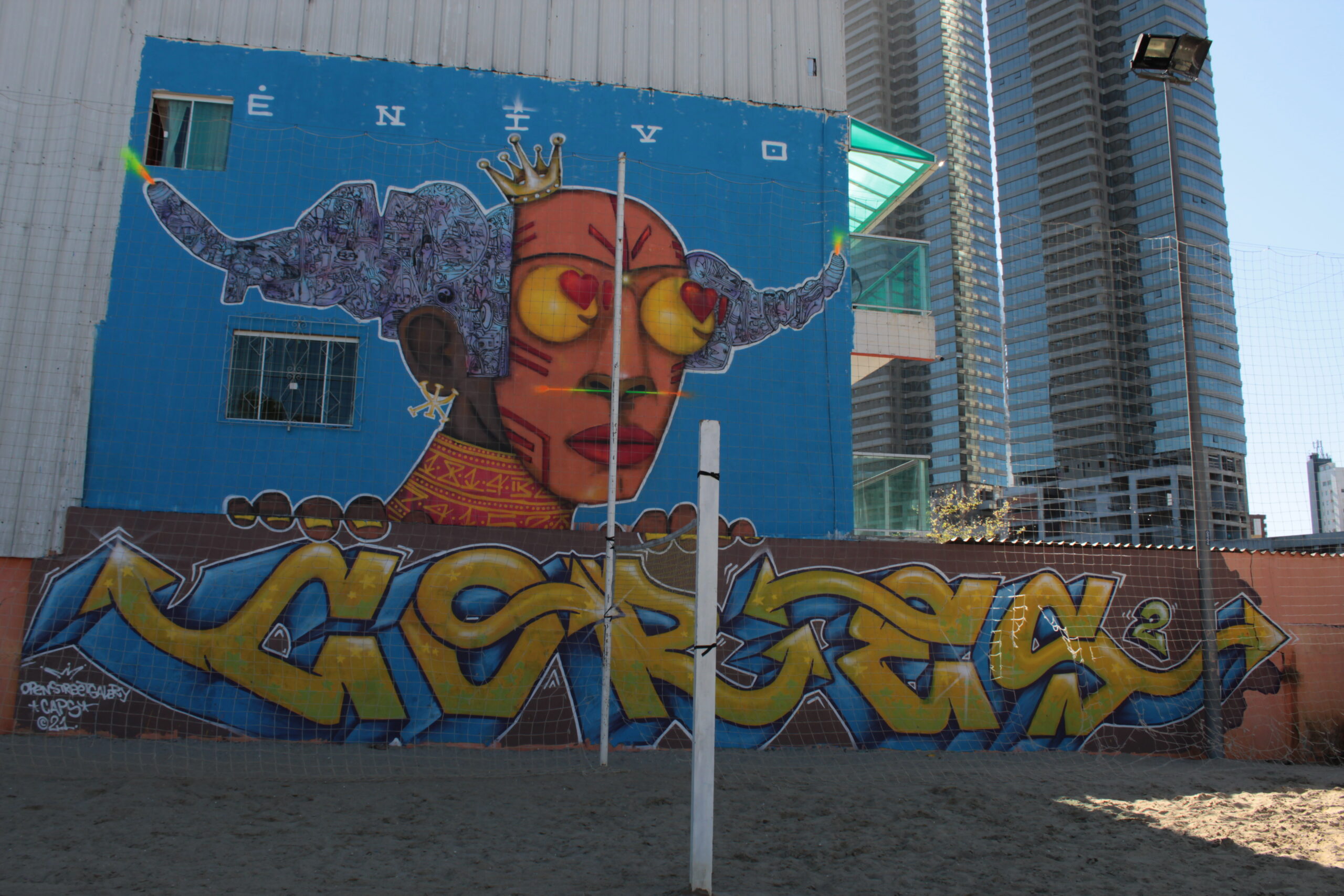 Texto retirado do mapa digital gratuito "1° Mostra de Arte Urbana de Balneário Camboriú (SC): janela da memória" produzido pela Open Street Galery.