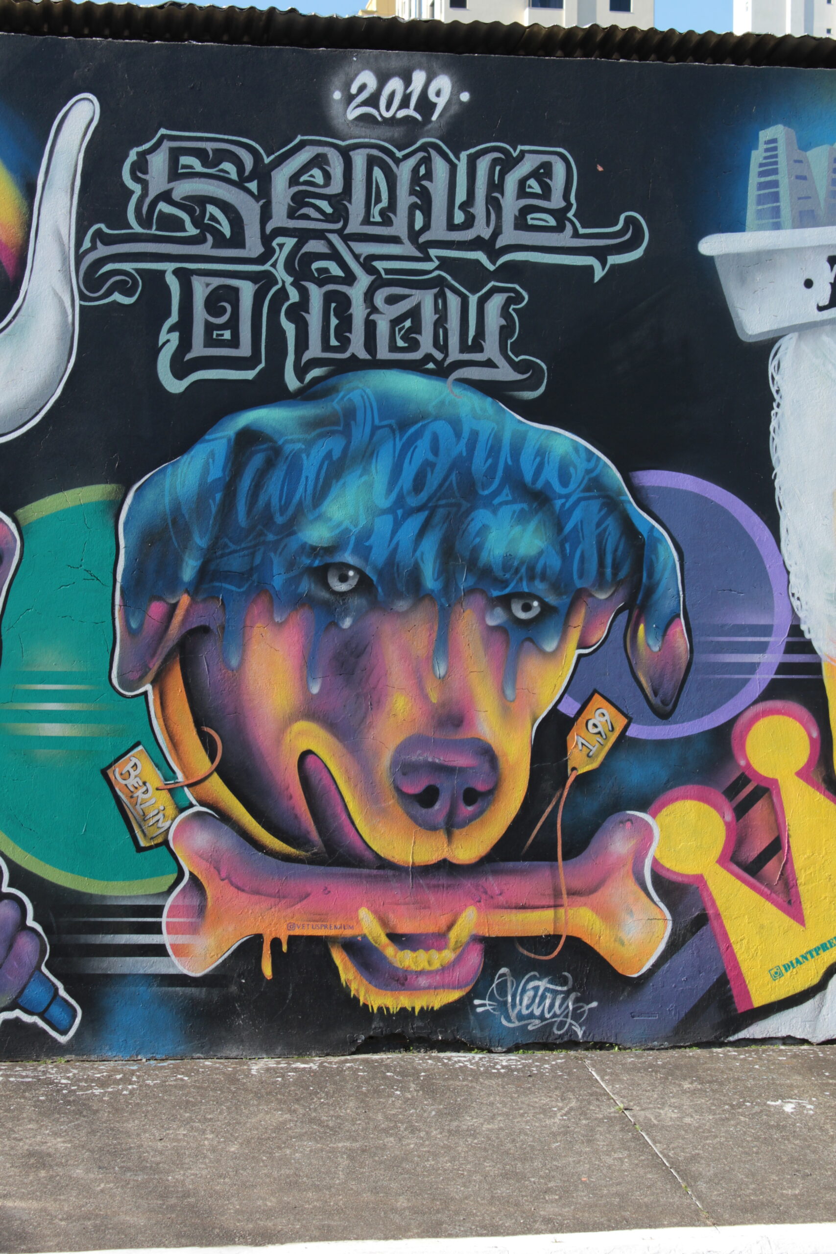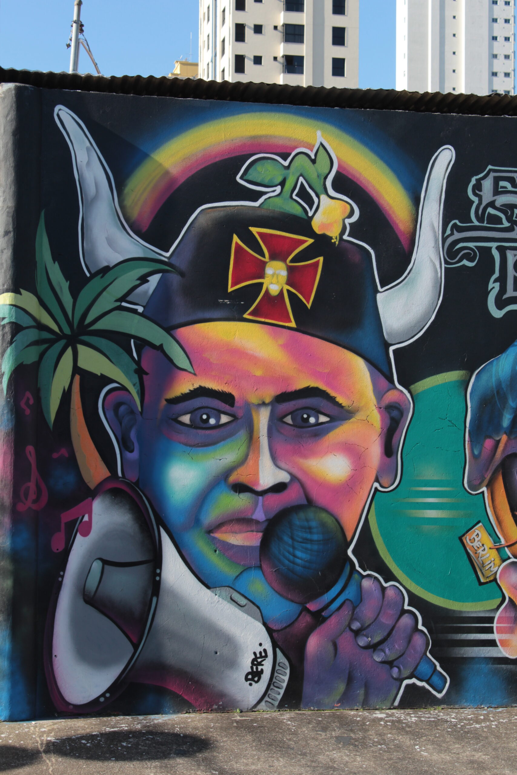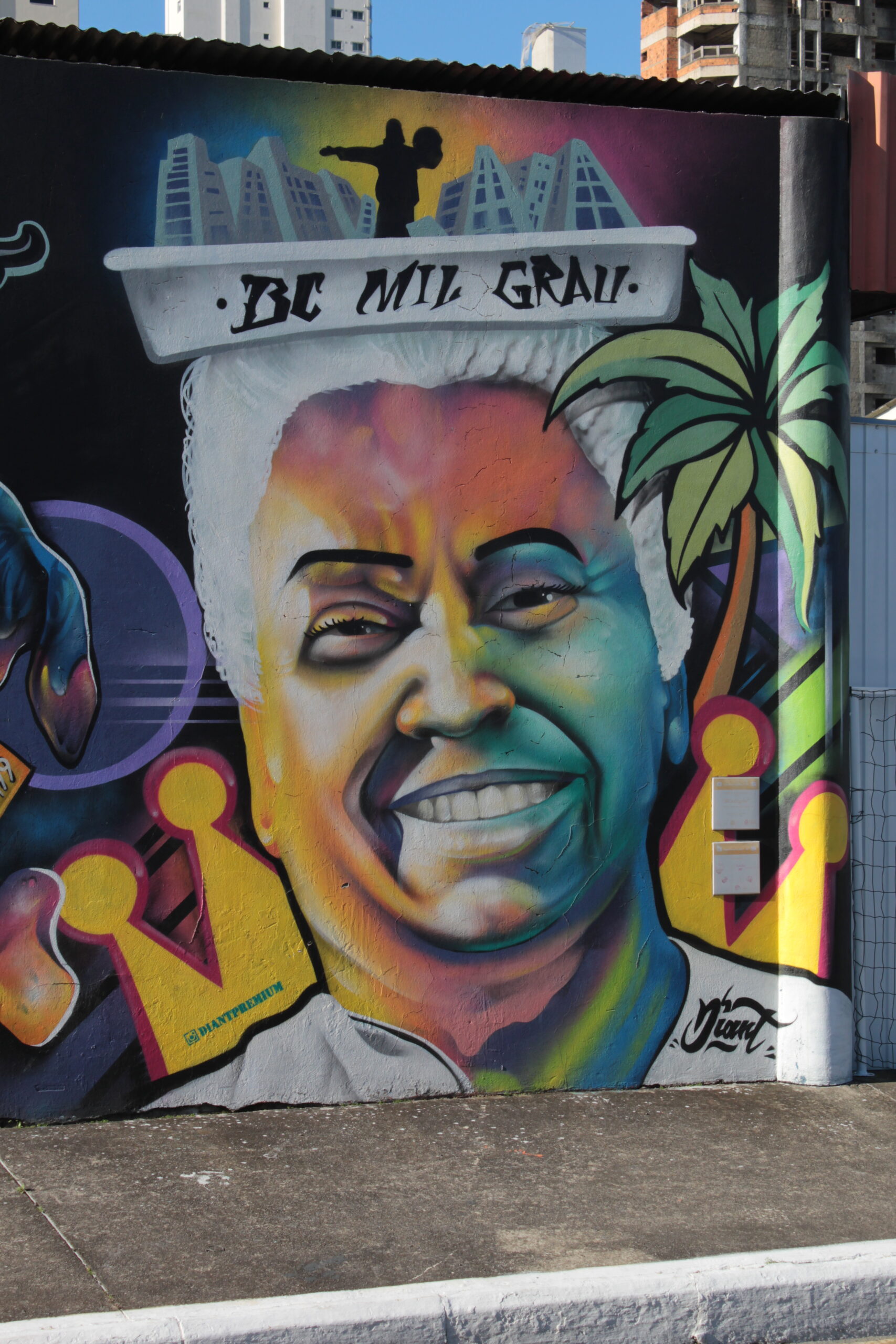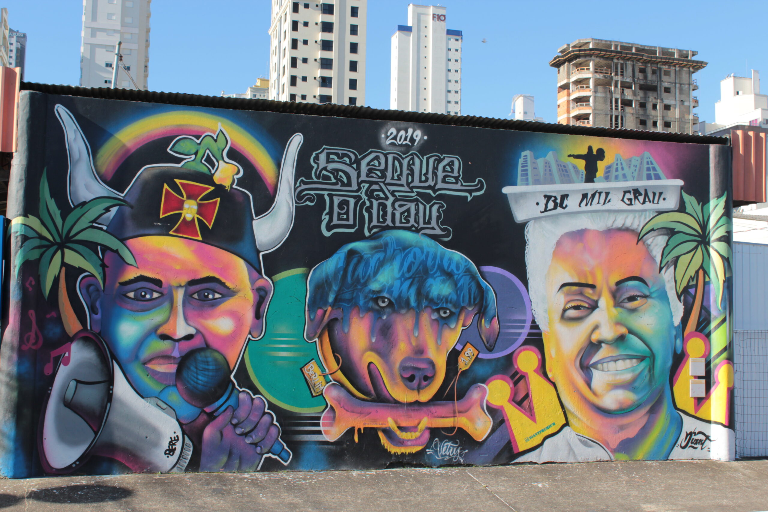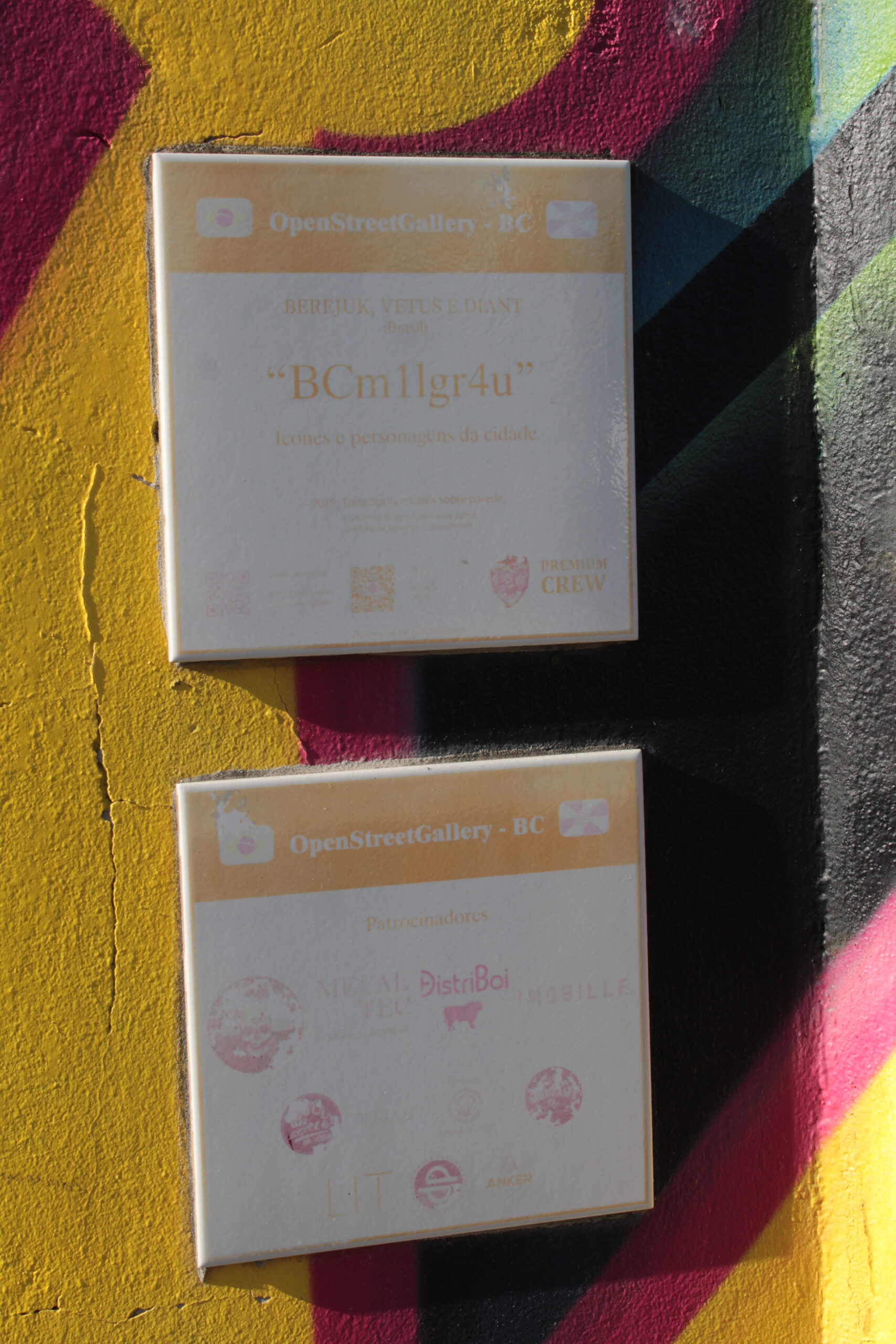 A obra representa três personagens bem conhecidos na cidade de Balneário Camboriú. A “tia da cocada”, o homem que andava pelas ruas da cidade com um megafone e um chapéu de chifres, e o cachorro Berlim.