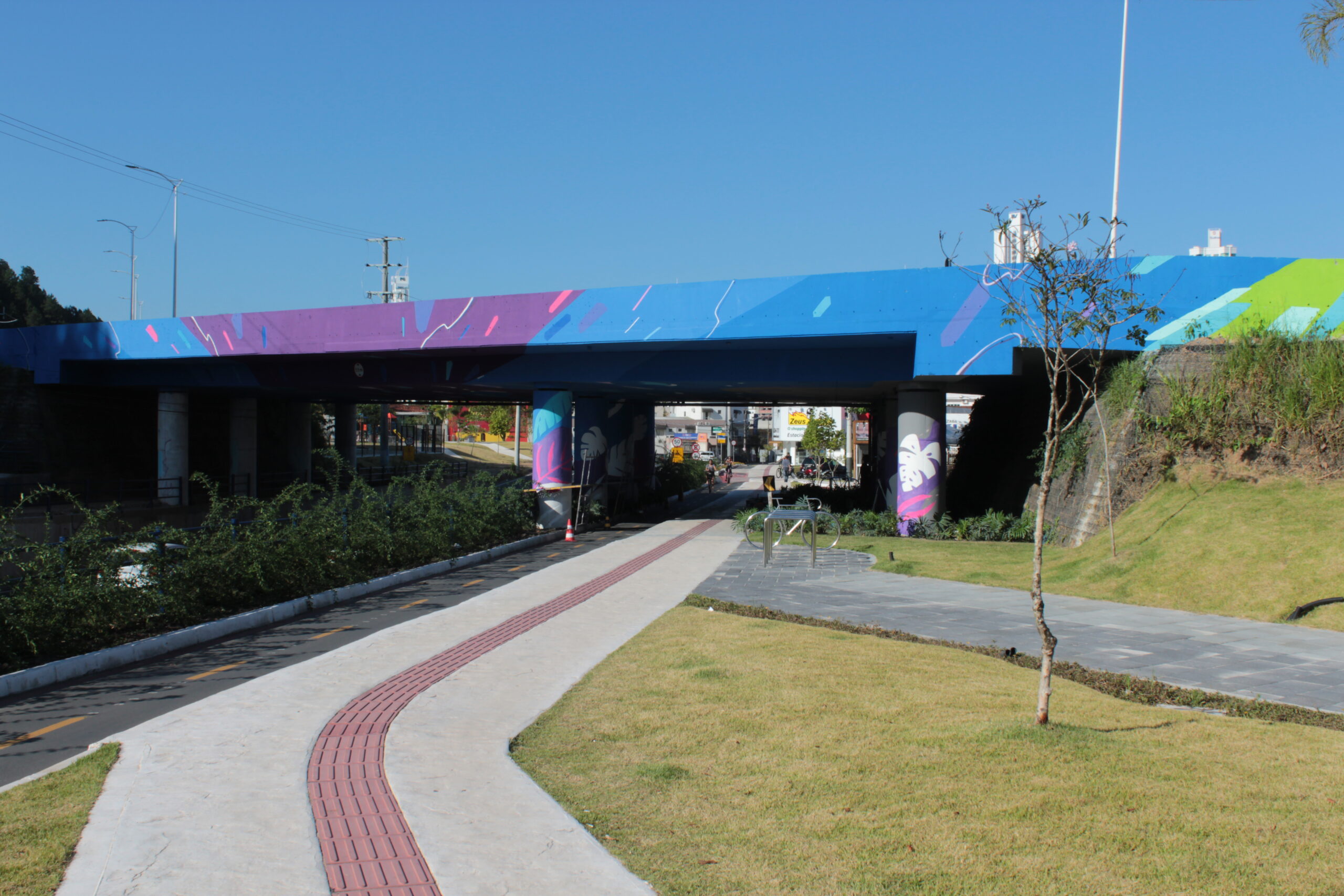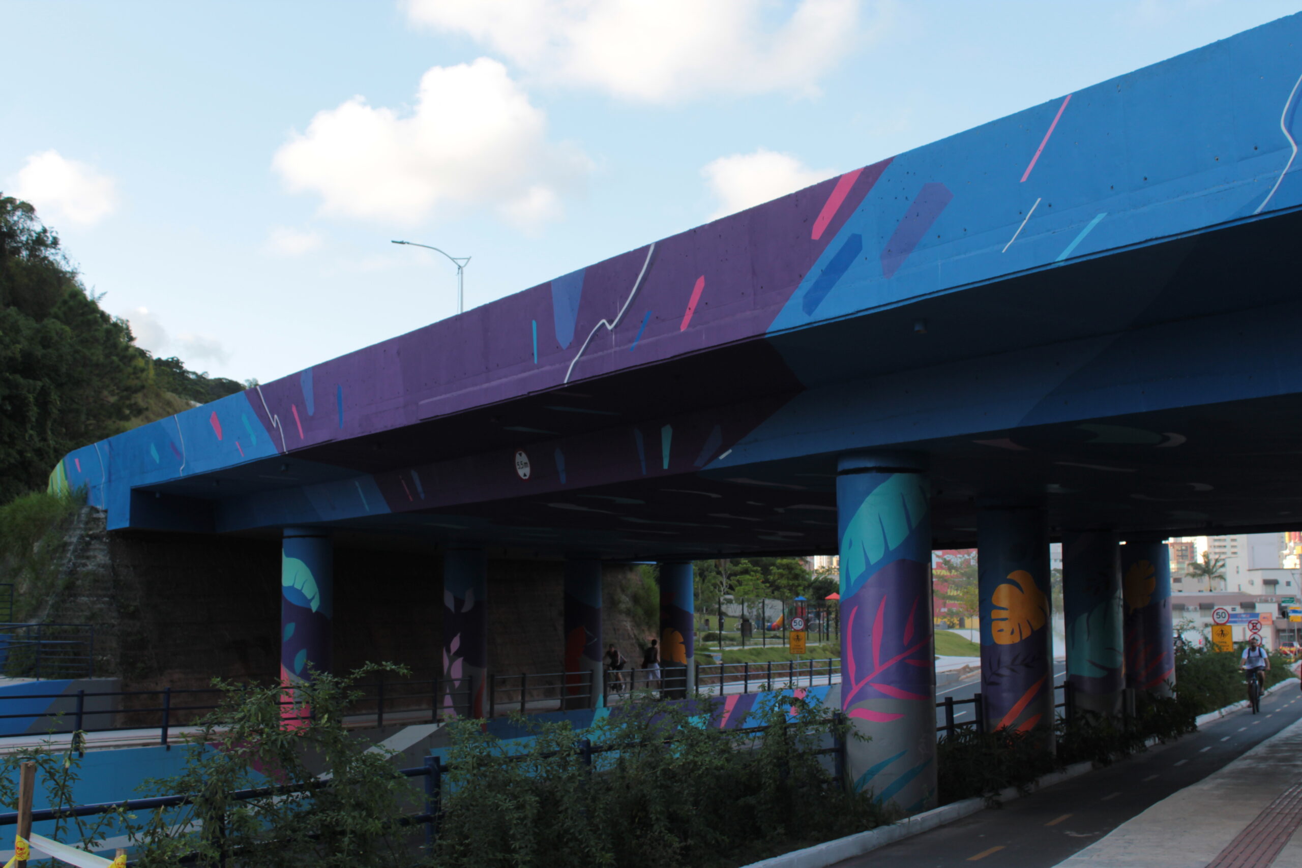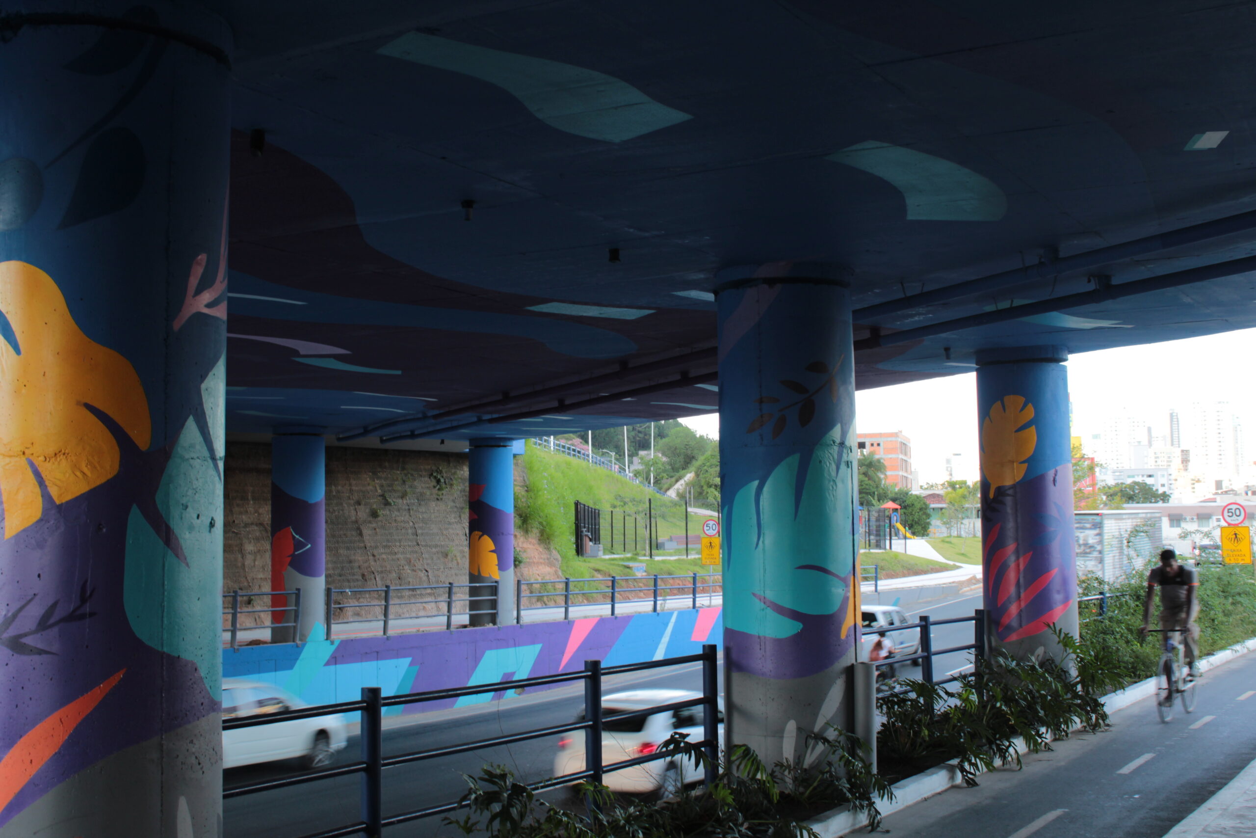 A obra representa ilustrações coloridas nas laterais do elevado da 4° Avenida, na quadra de esportes e nos pilares do elevado, remetendo a um local agradável e harmônico para quem passa por ali.