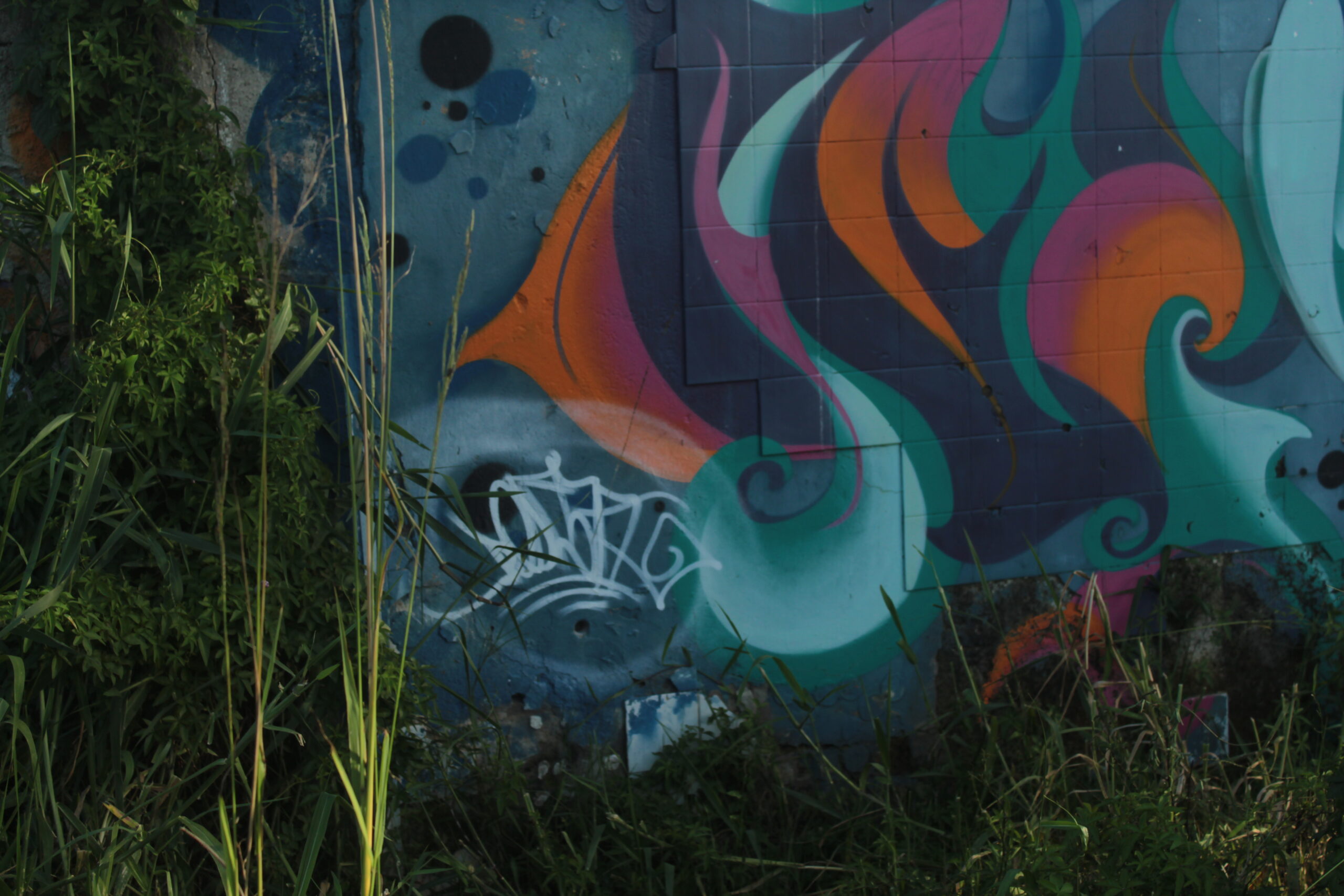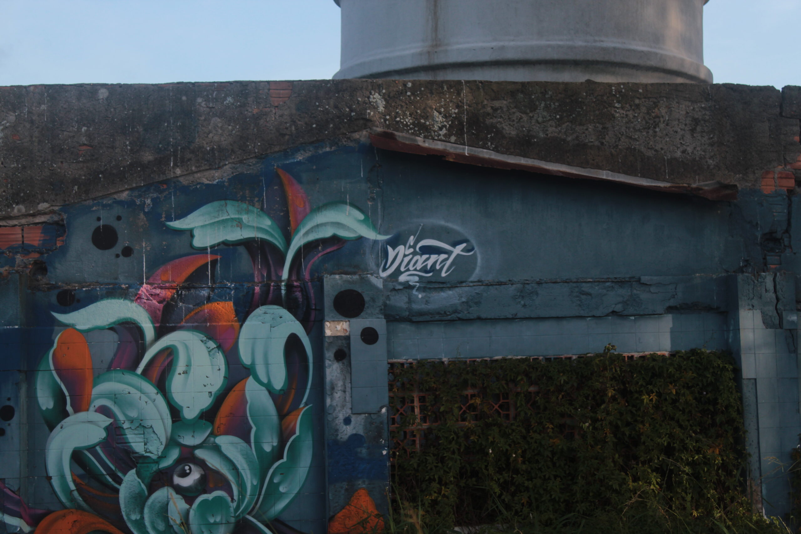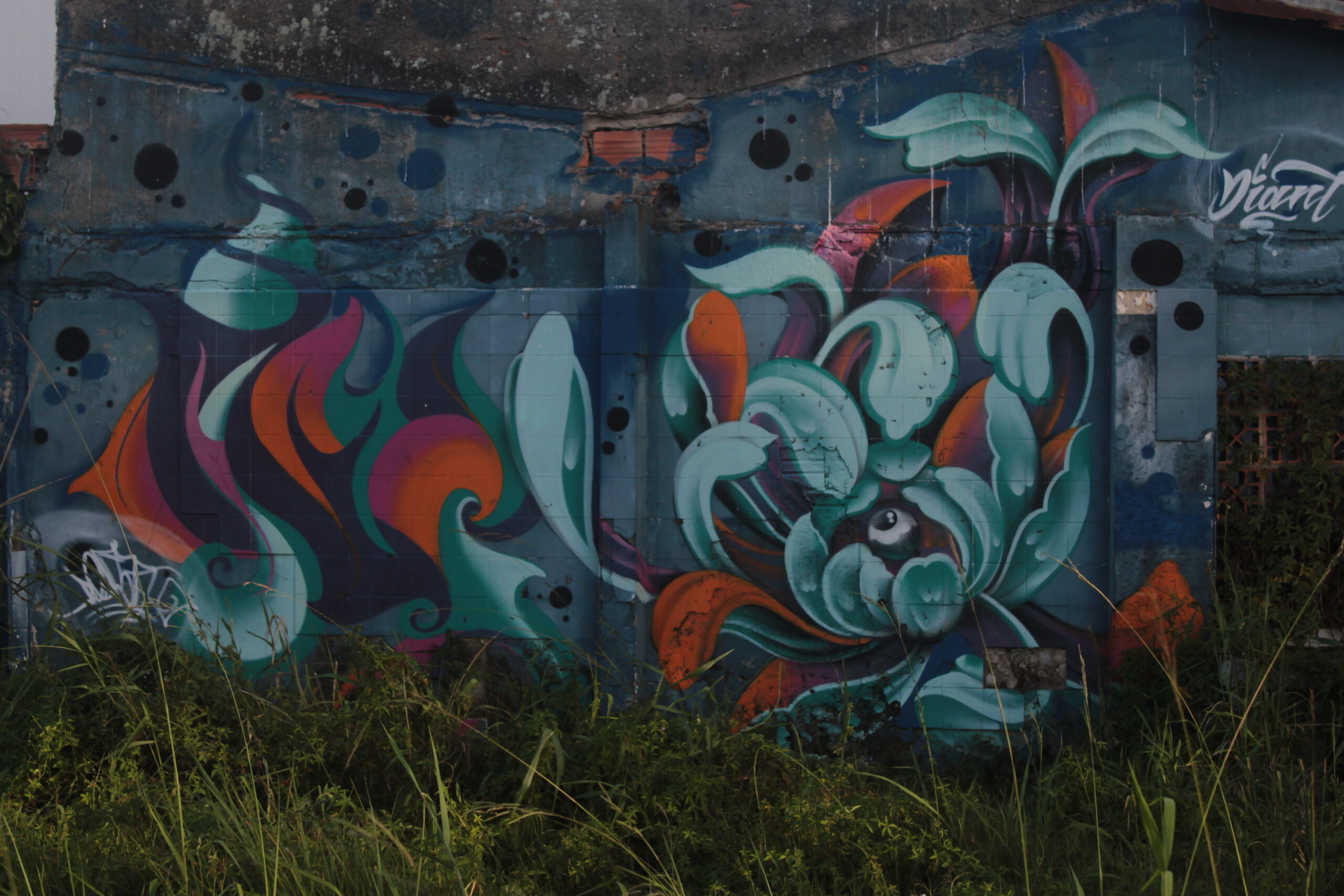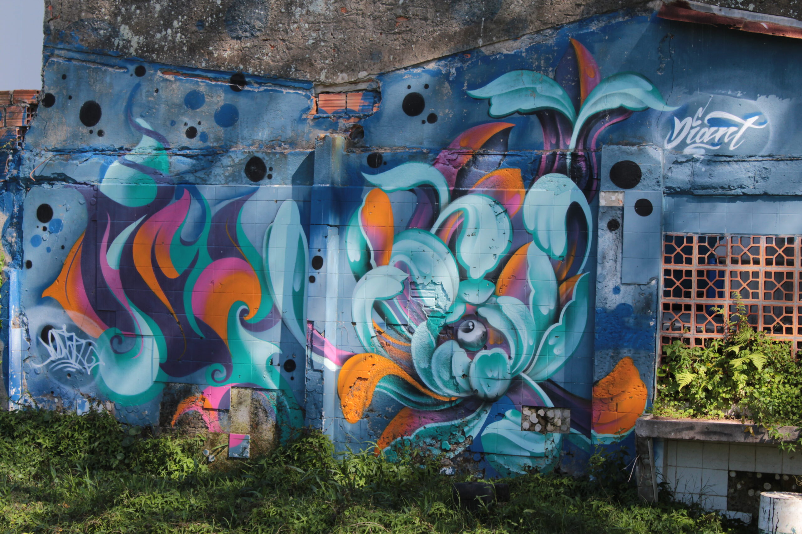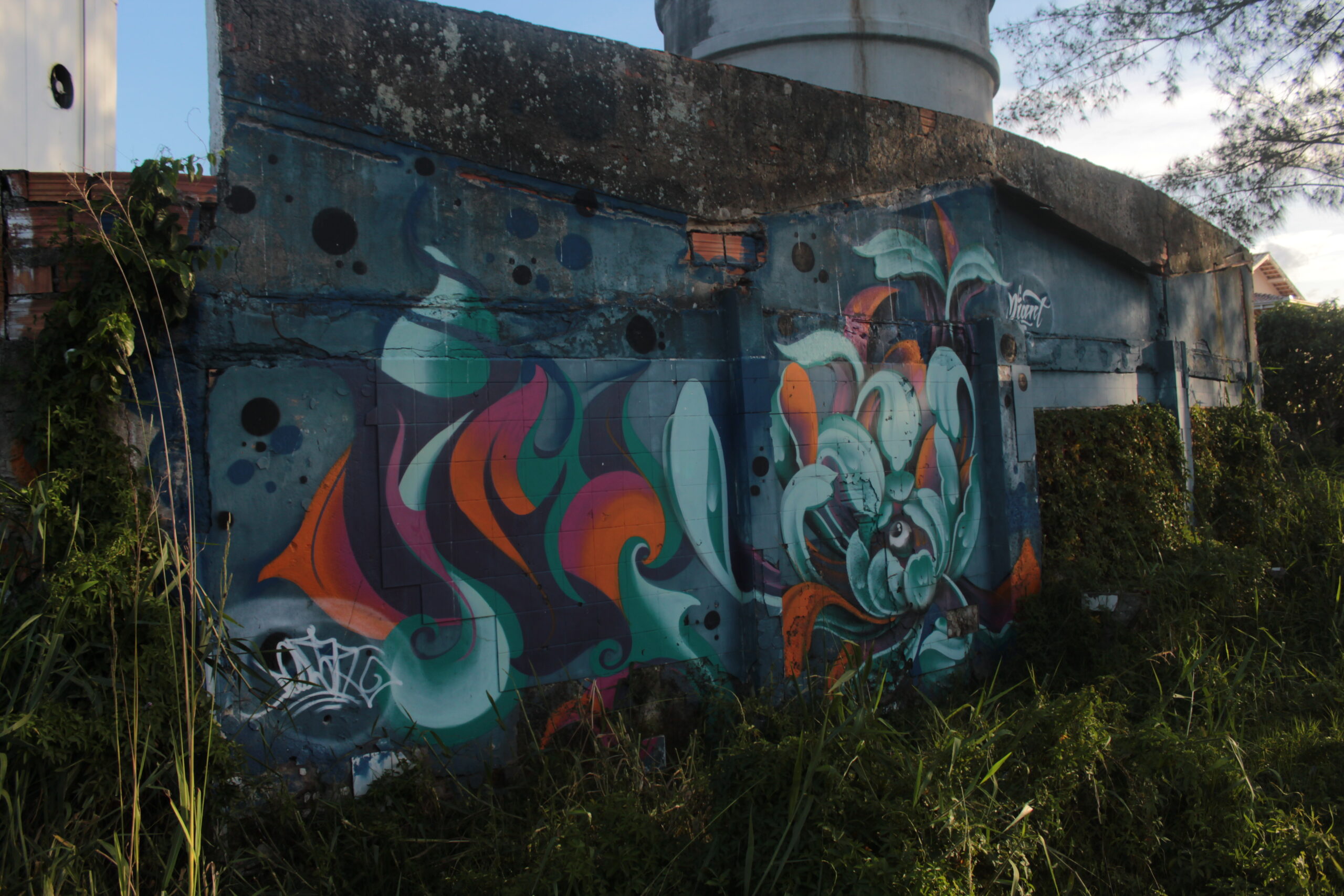 A obra representa figuras abstratas que lembram flores, estimulando a imaginação de quem a vê.