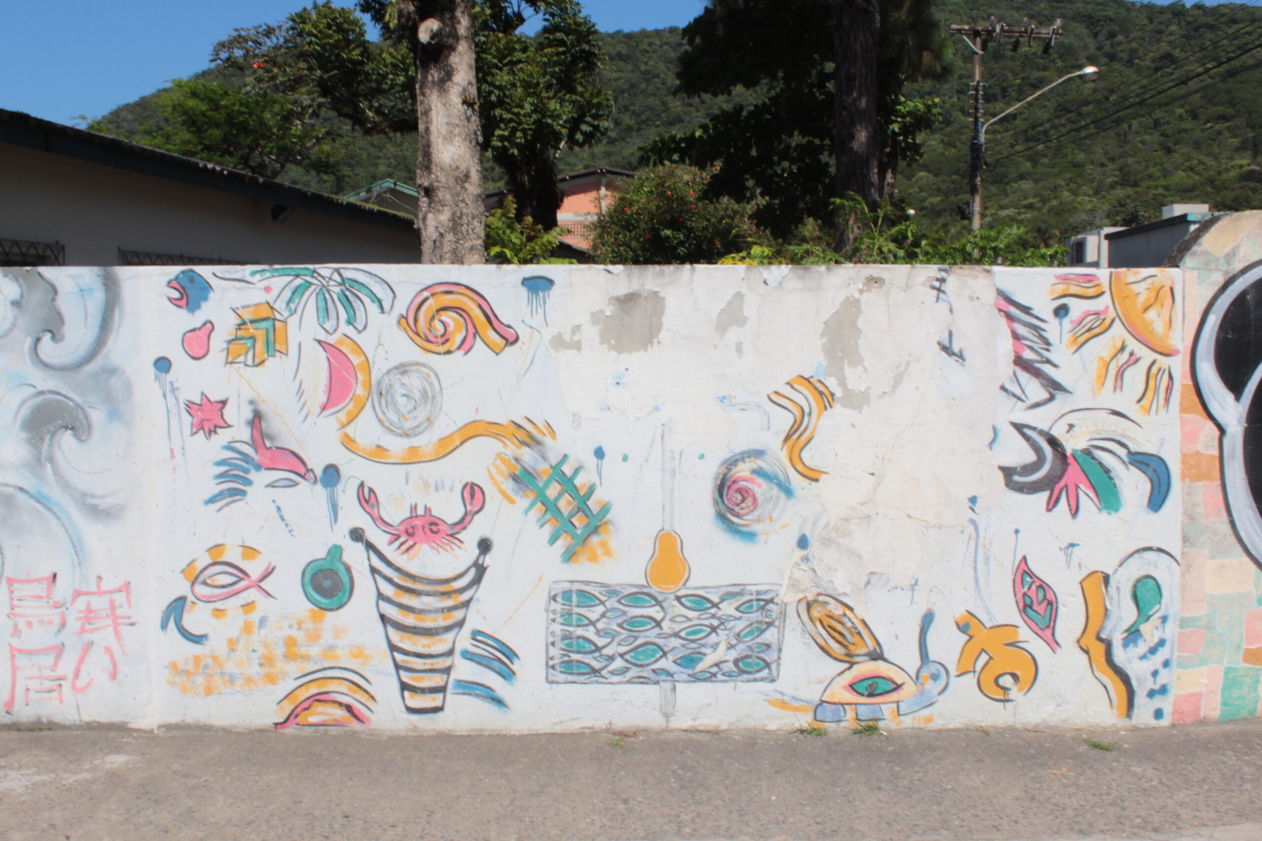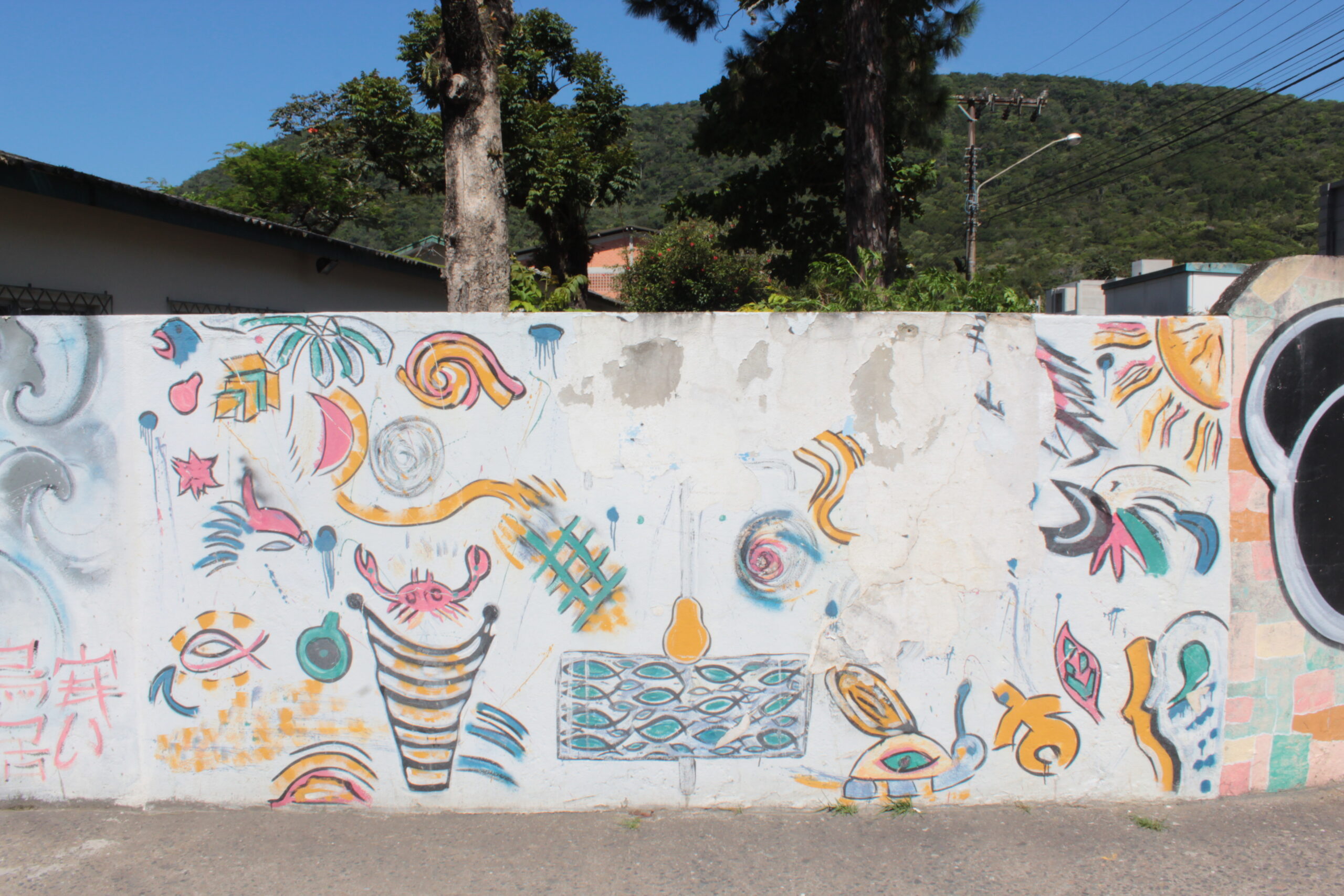 Mural com desenhos que remetem a praia.
