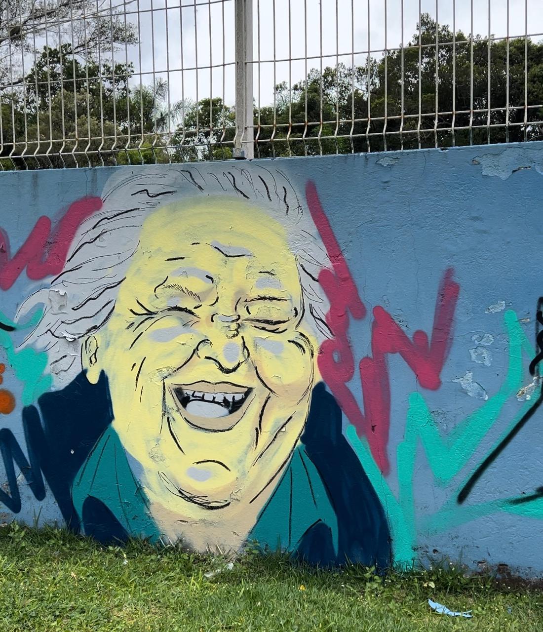 Esta obra foi criada em homenagem a Adelaide Nascimento Rocha, moradora histórica da Praia de Taquaras e figura reconhecida pela sua força, simplicidade e profunda ligação com a comunidade local. Ao longo de mais de oito décadas vivendo na região, Adelaide testemunhou e participou das transformações que marcaram a história das praias agrestes de Balneário Camboriú, preservando na memória e nas palavras o modo de vida tradicional que definia a identidade do lugar. Conhecida também por seu papel como benzedeira, ela simbolizava cuidado, acolhimento e espiritualidade, oferecendo apoio a muitos moradores que buscavam sua bênção e sua presença serena. Sua vida extensa, marcada pela família numerosa que construiu e pelas histórias que guardou, reflete um legado de dedicação, pertencimento e raízes profundas.