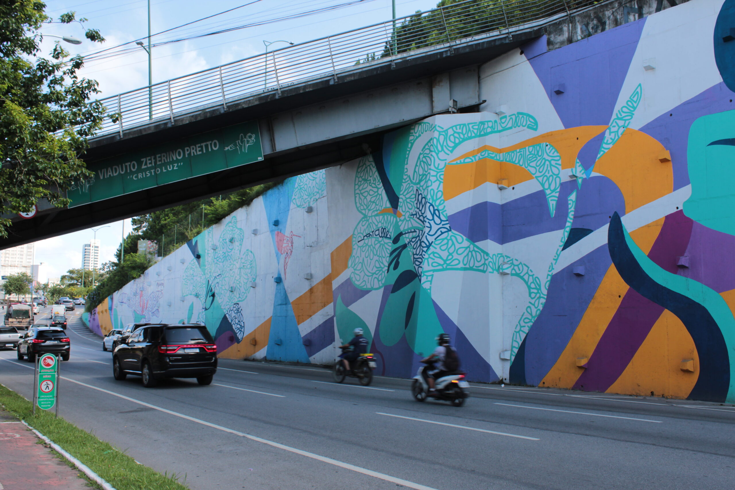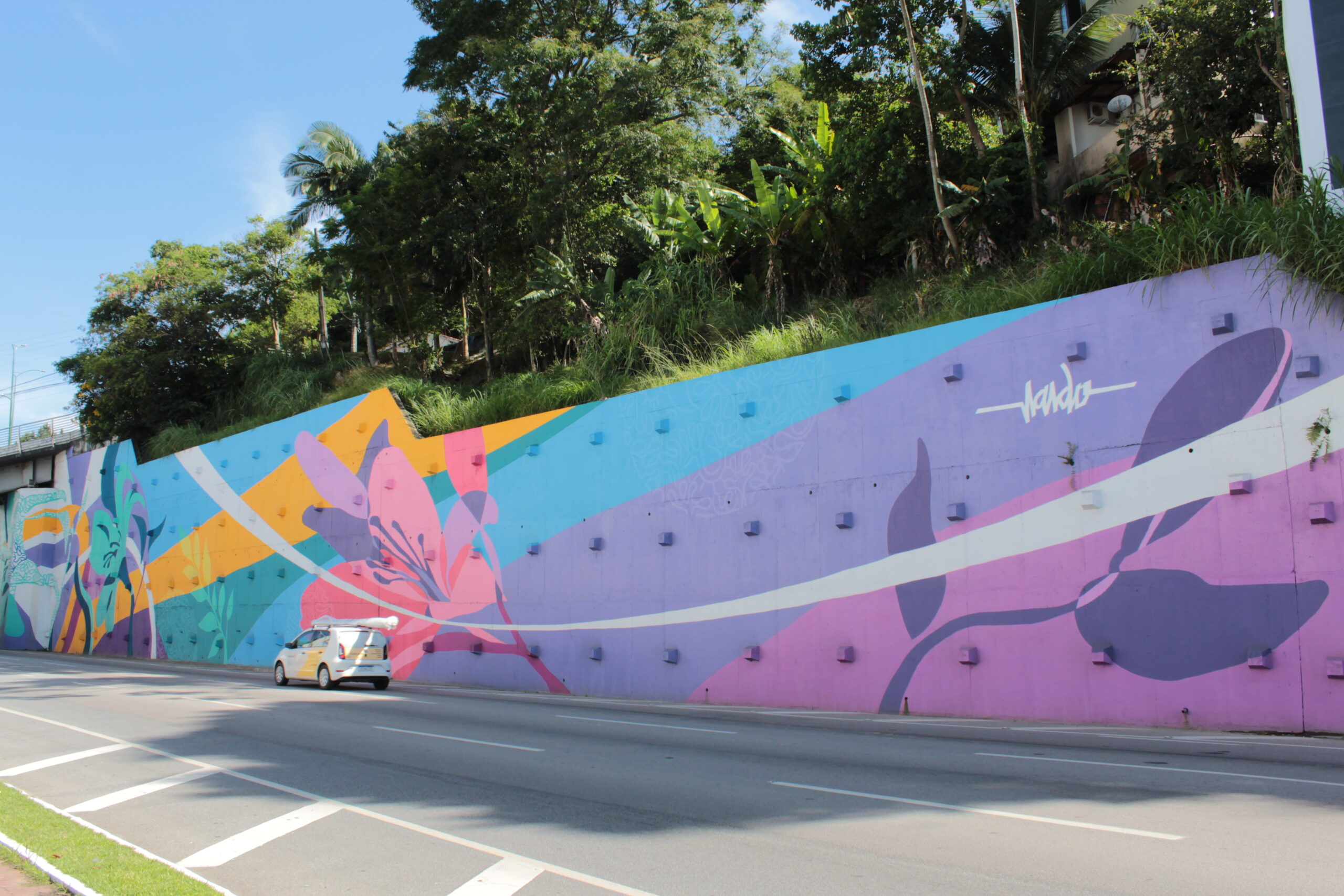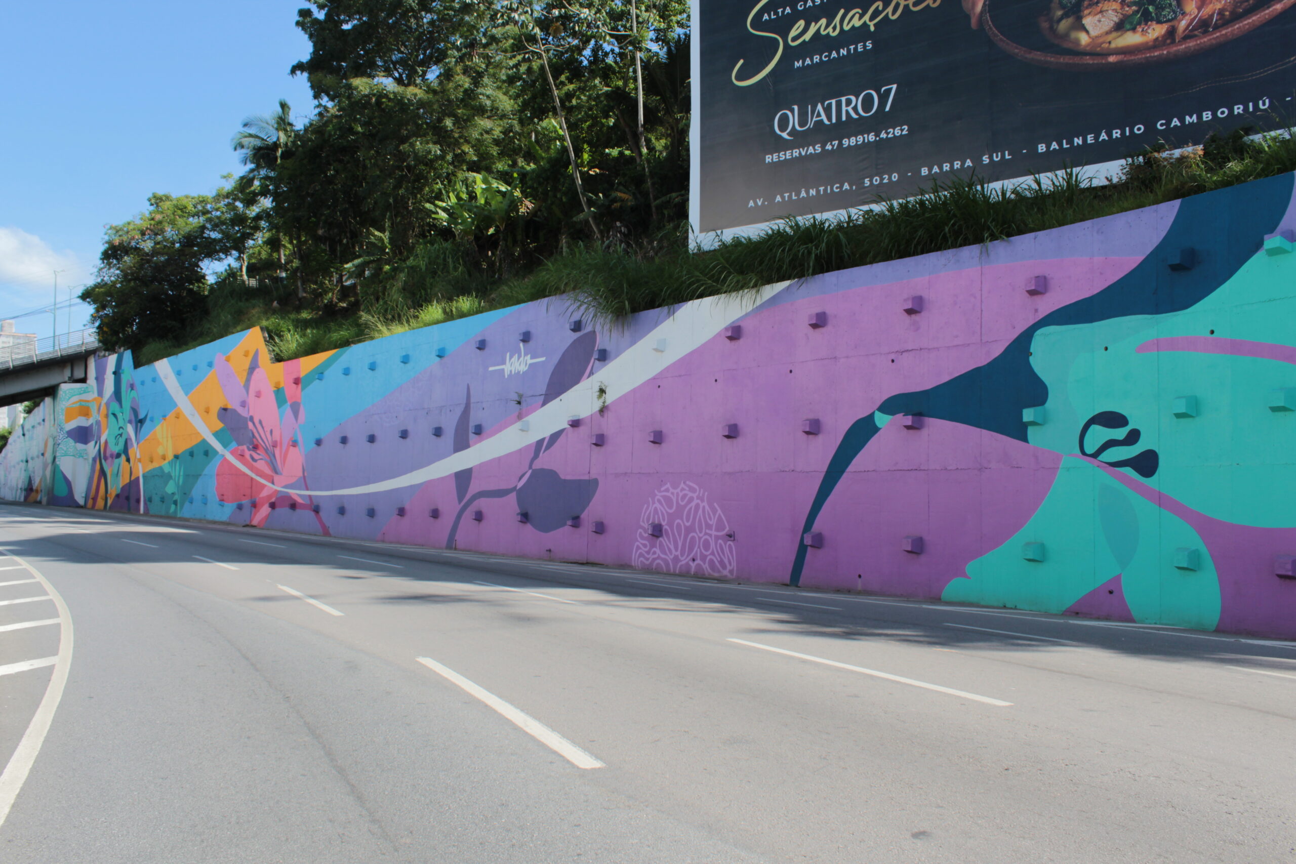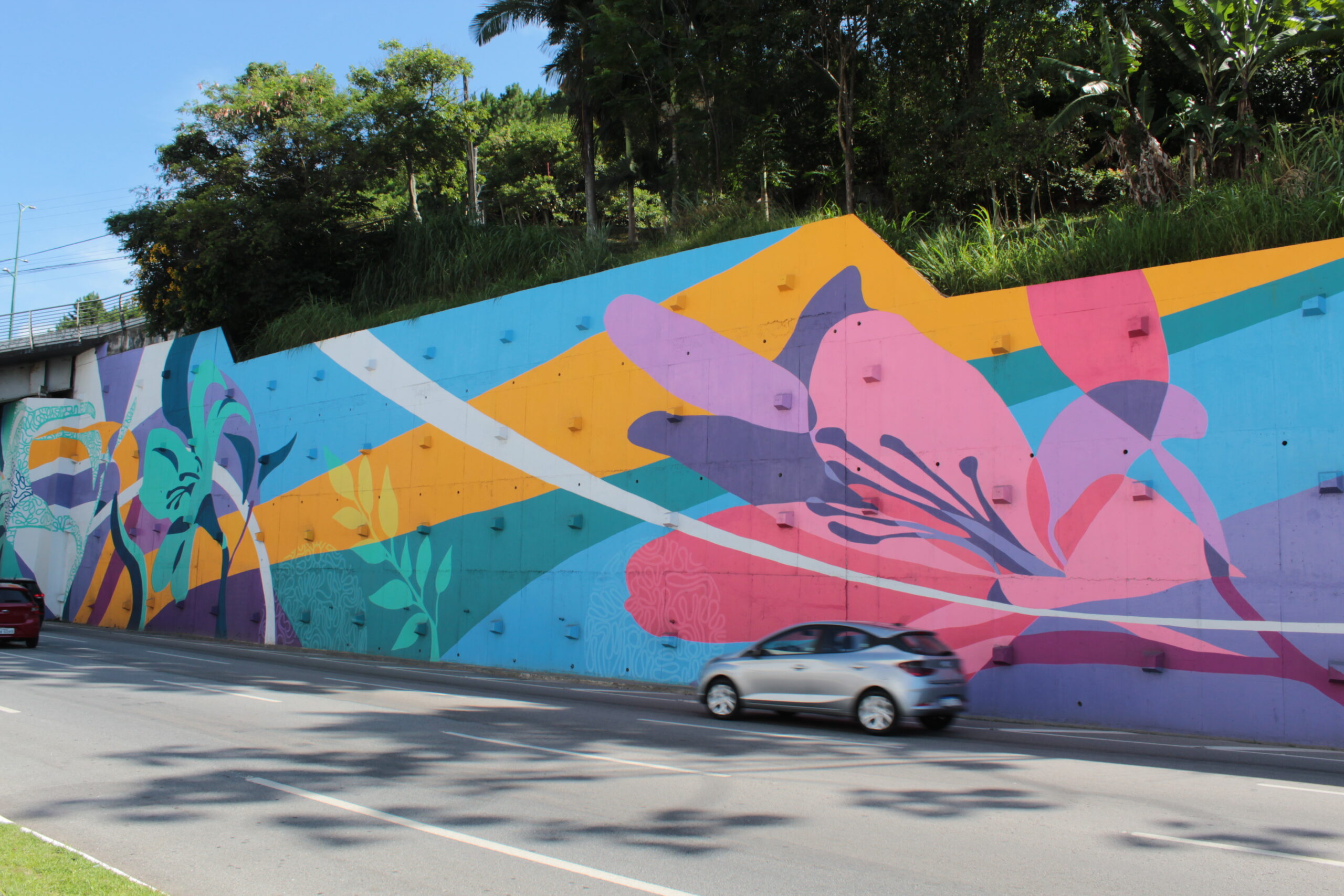 “O mural “Jardim de Lírios” proposto pelo movimento de arte urbana independente OpenStreetGallery.CO, inspira-se na beleza e delicadeza da natureza em contraste ao concreto acinzentado da cidade, impactando de maneira positiva e proporcionado luz, cor e vida ao cenário urbano. O Lírio é uma planta das mais perfumadas e carrega diferentes signos e desde a Grécia antiga está associado à proteção, inteligência, respeito e a sua variação de cores eleva e influencia os significados e intenções. A conexão envolve além das delimitações da parede e cria um arranjo de flores de lírios que se conectam ao embasamento da edificação de um dos principais cartões postais da cidade, o Cristo Luz. A planta, mencionadas no “discurso da montanha”, é assimilada à perfeição e a beleza da natureza e ressignifica o conhecimento do ser humano e leva à percepção sobre o status de “riqueza”. Na corrente de pensamento chinês Feng Shui, os lírios representam o verão e a fartura, e significam o amor eterno e também significam a pureza.” (O.S.G).