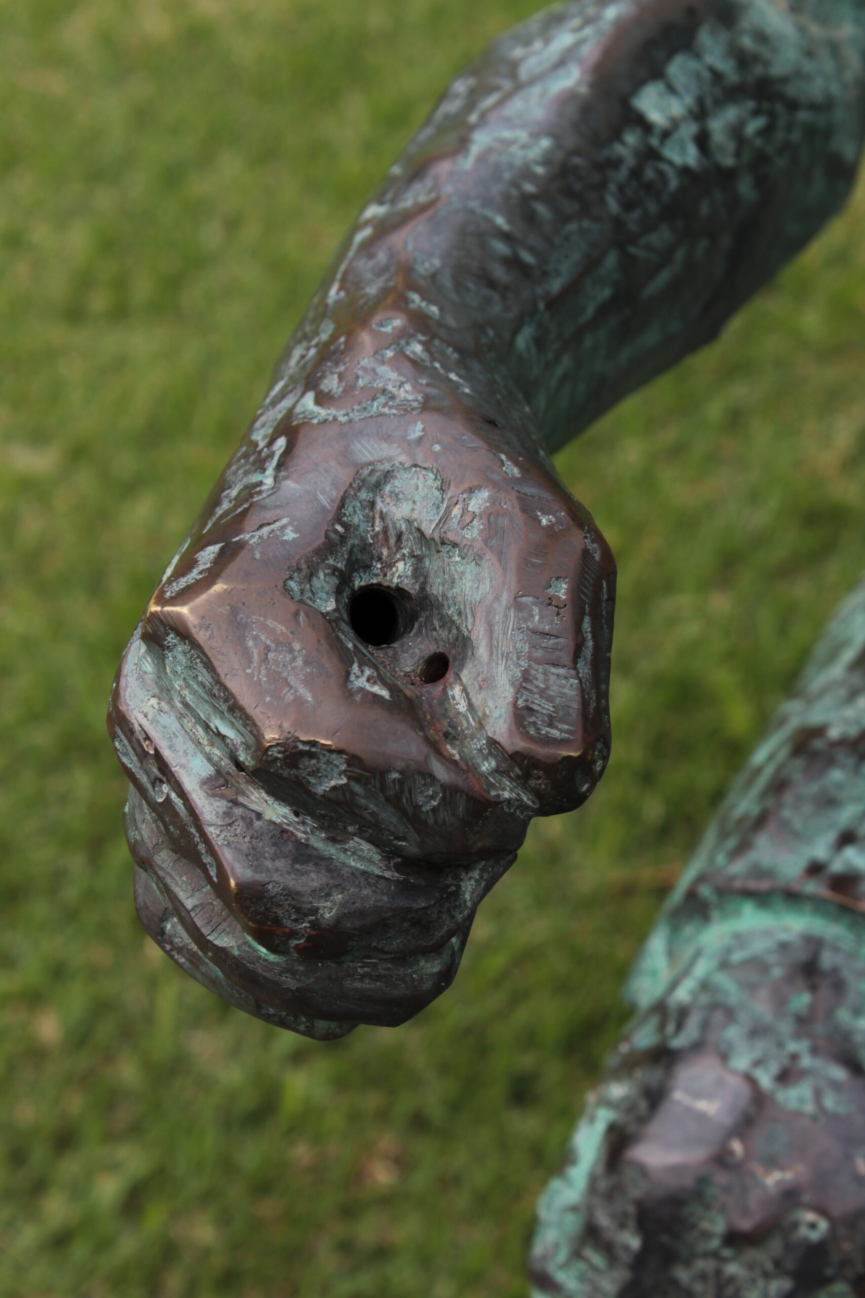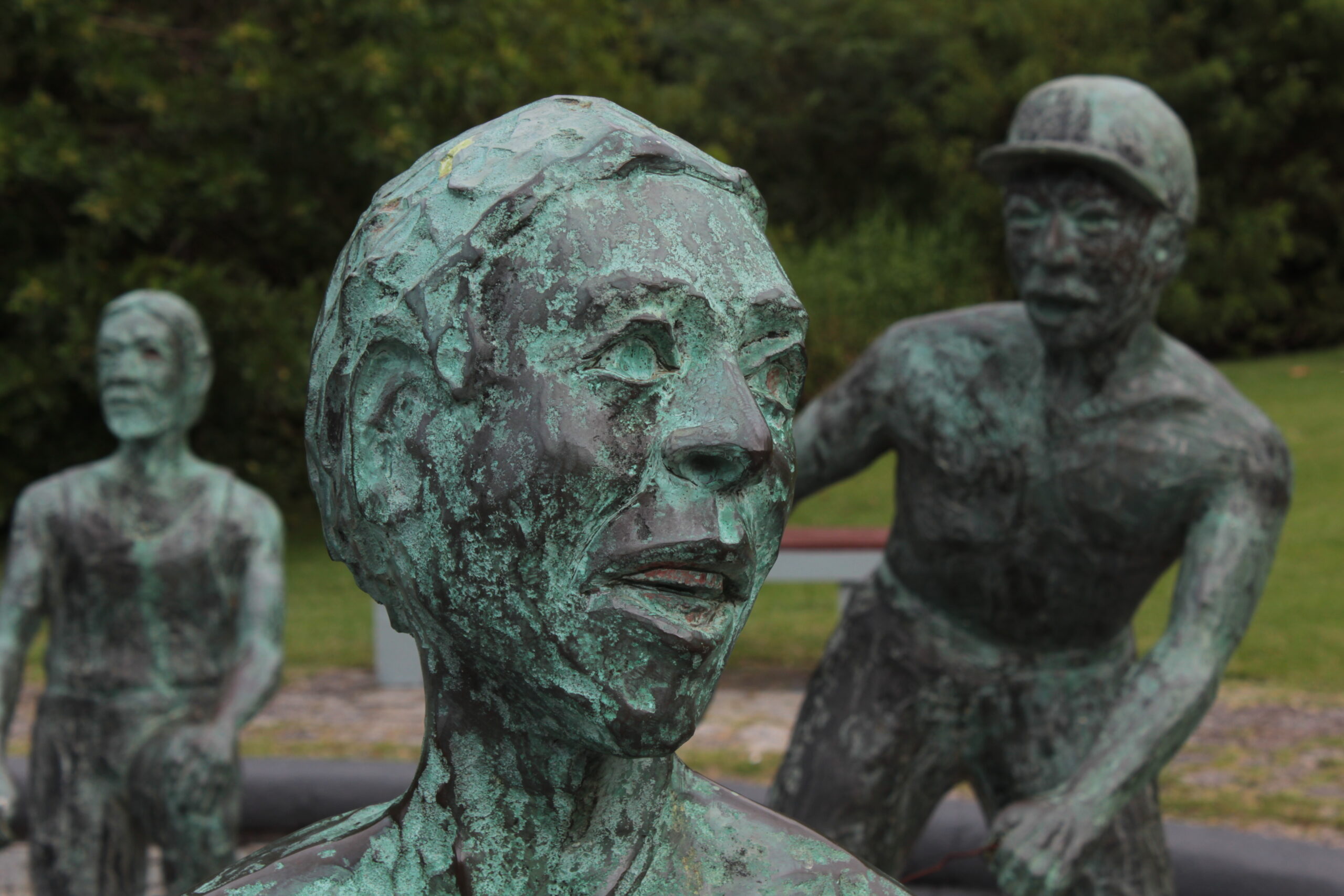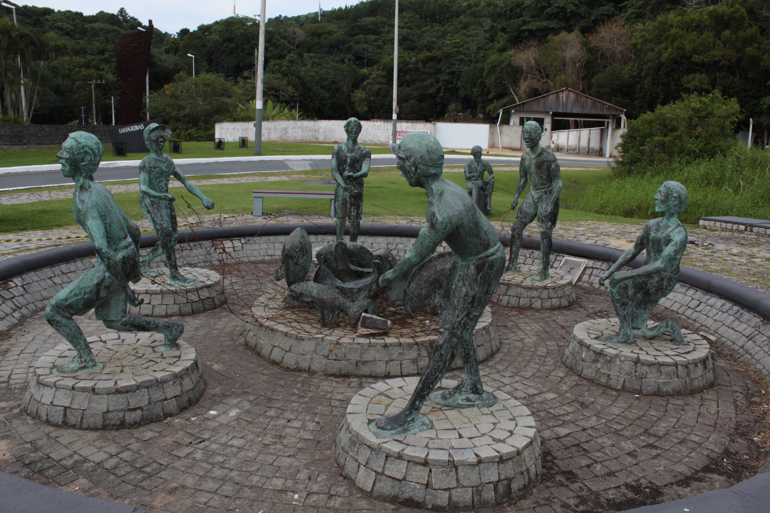 A obra representa seis pescadores fazendo o arrasto e um isolado consertando uma rede. Todas as esculturas são feitas em bronze fundido.